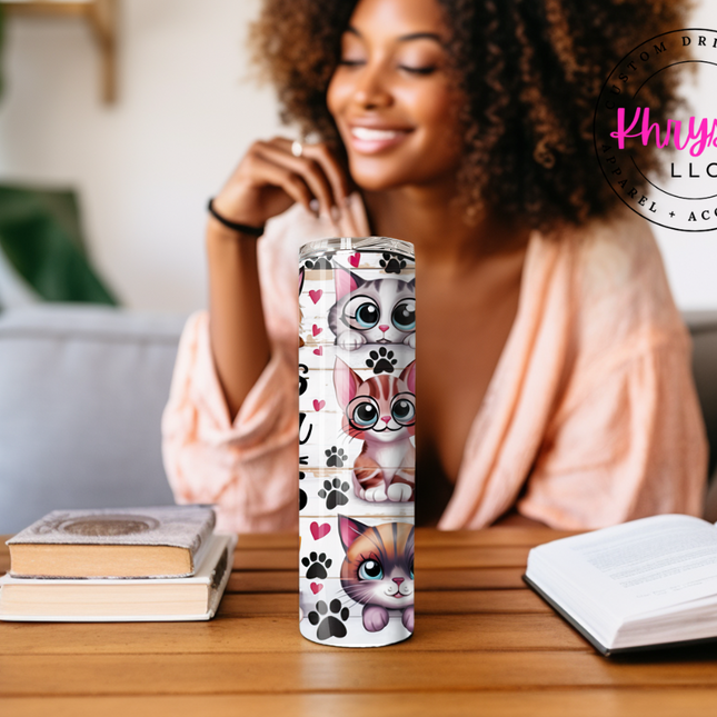 Stay hydrated in style with our Life is Better with Cats tumbler! This 20oz tumbler comes with a durable straw for easy sipping. Show off your love for cats while enjoying your favorite drink. Perfect for on-the-go or at home. Purrfect for any cat lover! Drinkware Details: Life is Better with Cats 20oz Tumbler with Straw Double-Wall Vacuum Insulated Clear Lid and Straw Included Hand wash only - not recommended for dishwasher Do not microwave This tumbler boasts a permanent image made with sublimation printing, guaranteeing a design that will stay vibrant and intact. Unlike vinyl or stickers, it won't peel off over time, allowing you to enjoy your tumbler worry-free. Shipping: Standard shipping: 3-5 business days The Khryssy Guarantee:Before Khryssy products go out, each product is personally inspected thoroughly to ensure that it meets our high expectations of quality merchandise. If the product does not meet Khryssy standards, it is discarded and remade until it is approved. We take pride in providing you with a product that stands out in terms of quality, durability, and stunning design.Please Note: Images shown on the listings are digitalized and shown as mockups. The actual look of the final product can slightly differ as we handcraft each one. Colors may appear slightly different on the final product from the color you see on your computer screen. What sets our stainless steel tumblers apart from others is our commitment to using only the finest materials on the market. Crafted from premium stainless steel, our tumblers are built to withstand the test of time. Say goodbye to fragile and easily dented tumblers - ours are engineered to be tough and resilient, making them perfect for both indoor and outdoor use. Our tumblers are printed with top-of-the-line permanent ink in our Simpsonville, South Carolina studio. The sublimation printing process we employ ensures that the design on our tumblers is not just surface-level, but truly integrated into the material itself. This means that you can enjoy your favorite designs without worrying about them fading, scratching, or rubbing off. From vibrant colors to intricate patterns, our sublimation tumblers showcase stunning, high-definition graphics that are sure to catch everyone's eye. Contact Us: Have a question? Looking for a more customized product? Please message us here at khryssy.com or send us an email at KhrystinaLDesigns@gmail.com