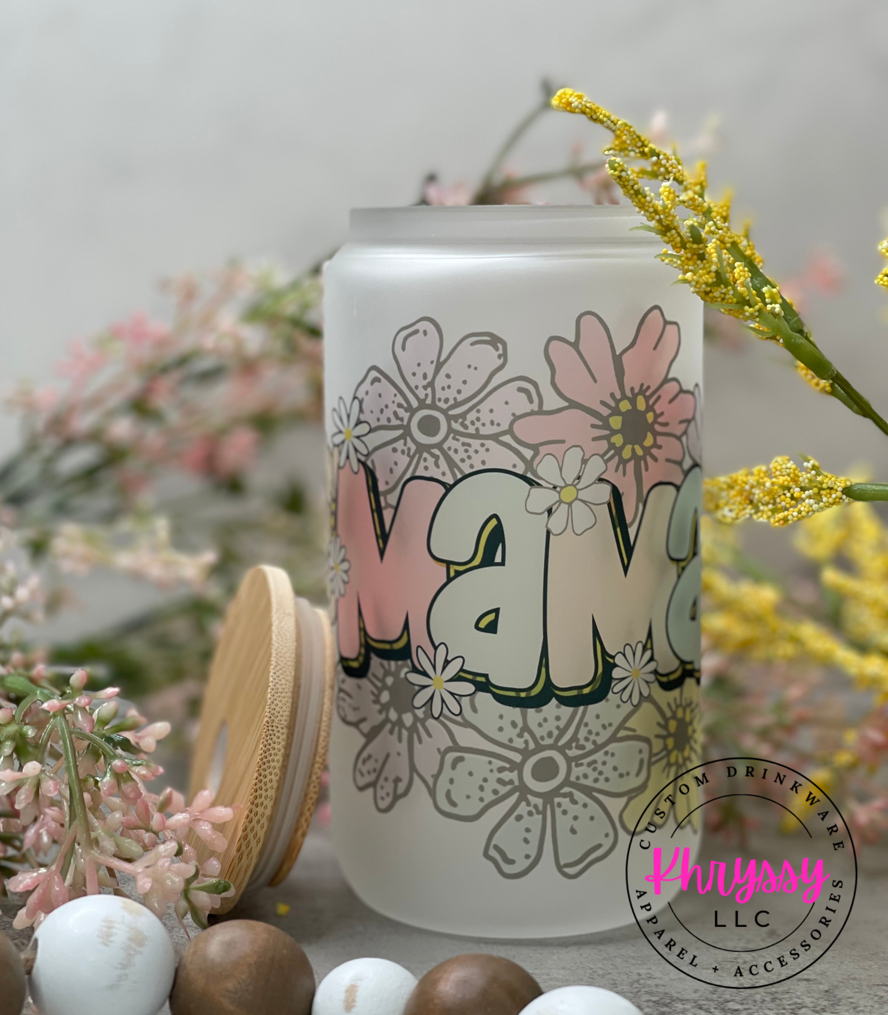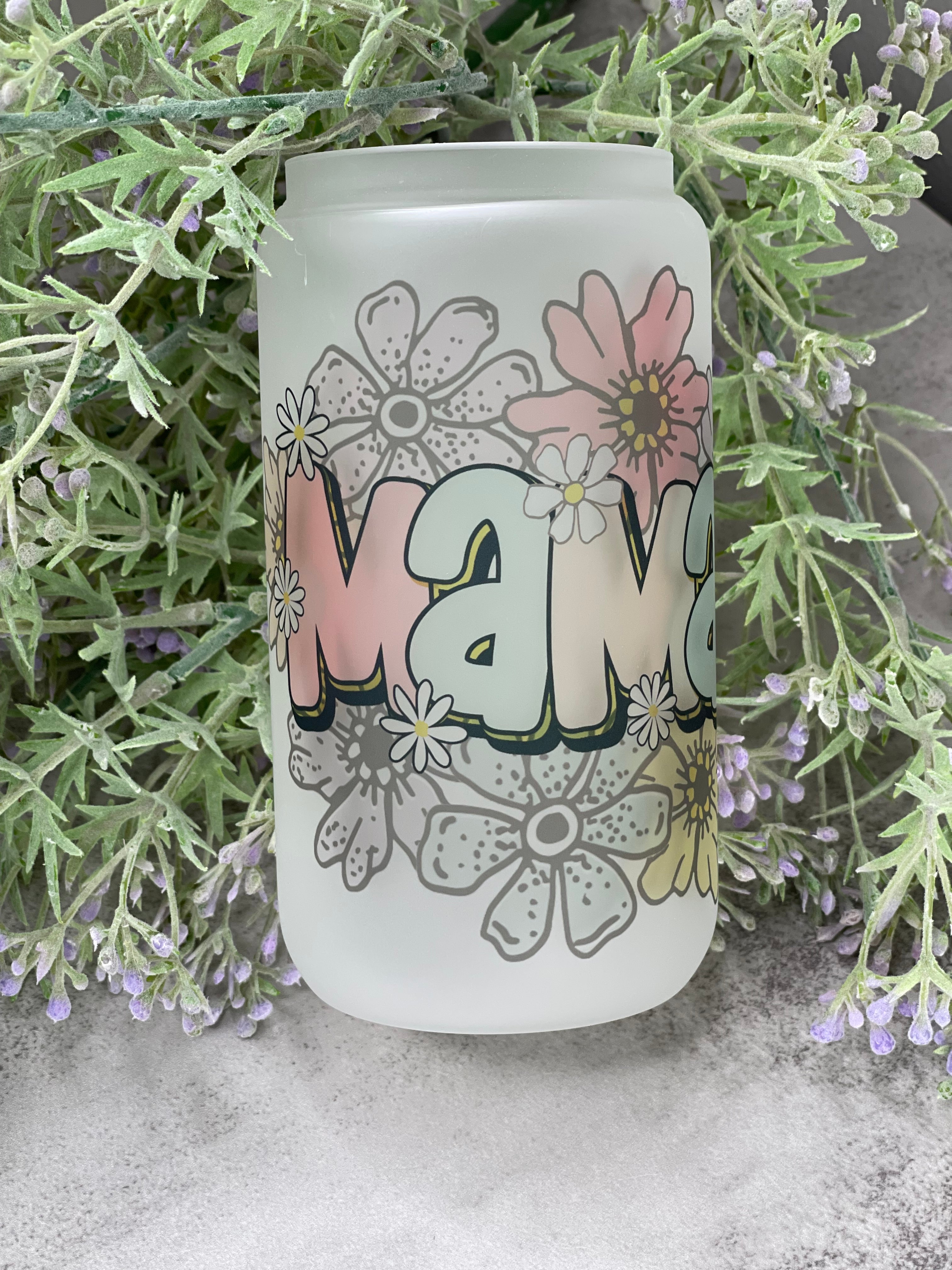 - 16oz Mama Frosted Libbey Glass with Glass Straw