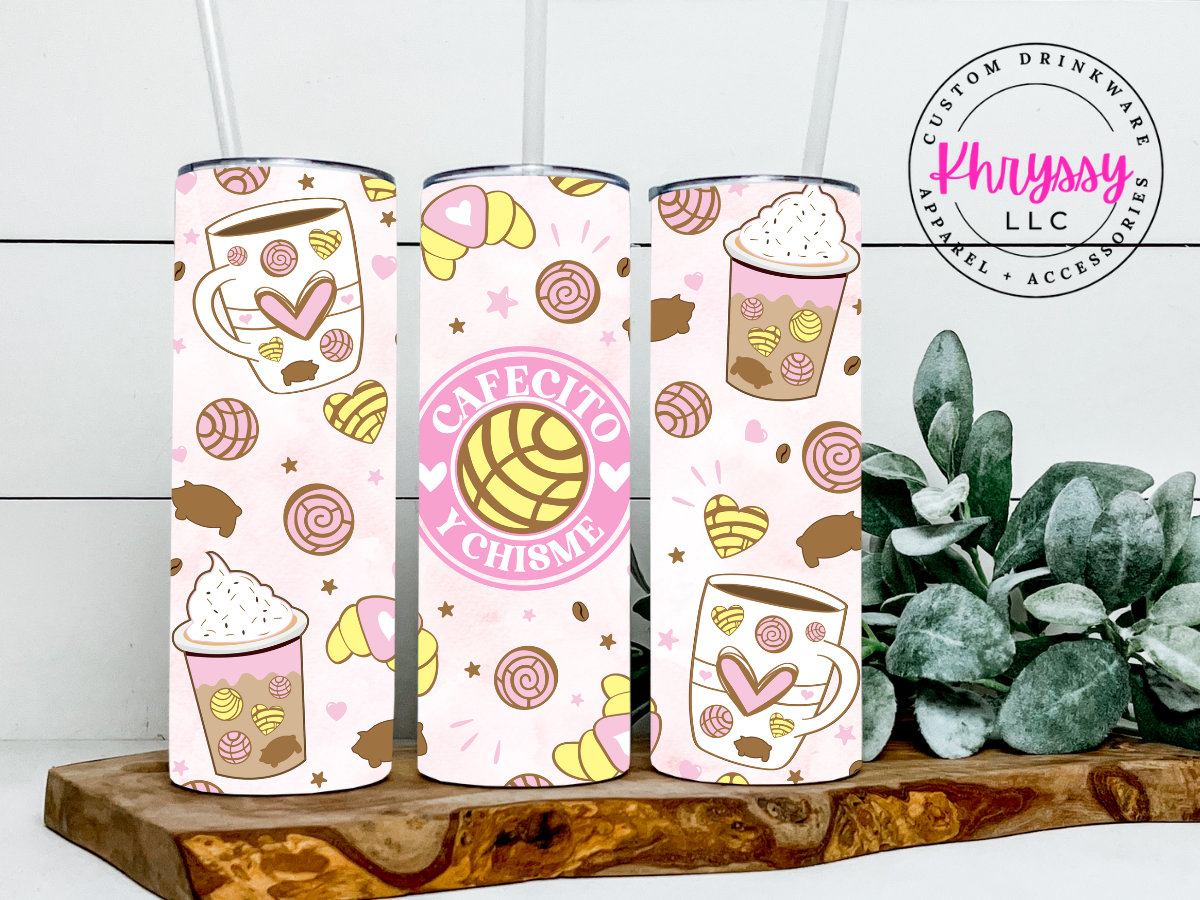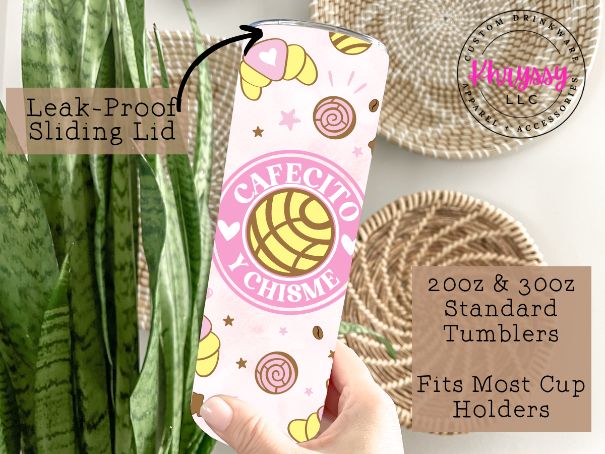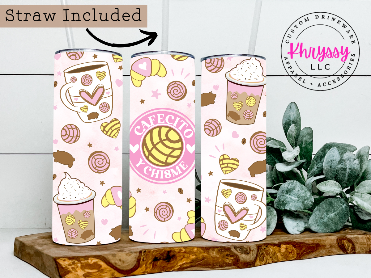 Cafecito Y Chisme 20oz Tumbler with Straw, perfect for holding your favorite beverage! This tumbler is perfect for any coffee lover!