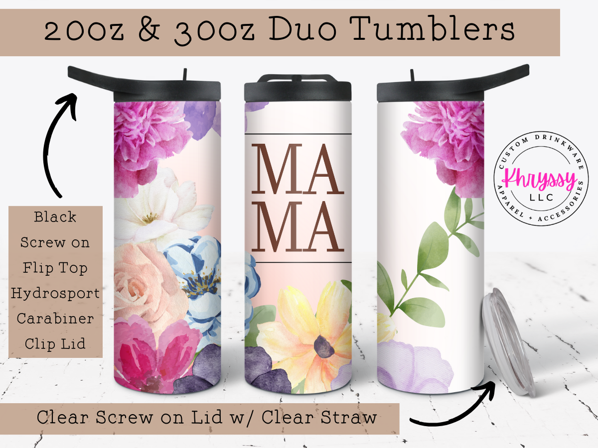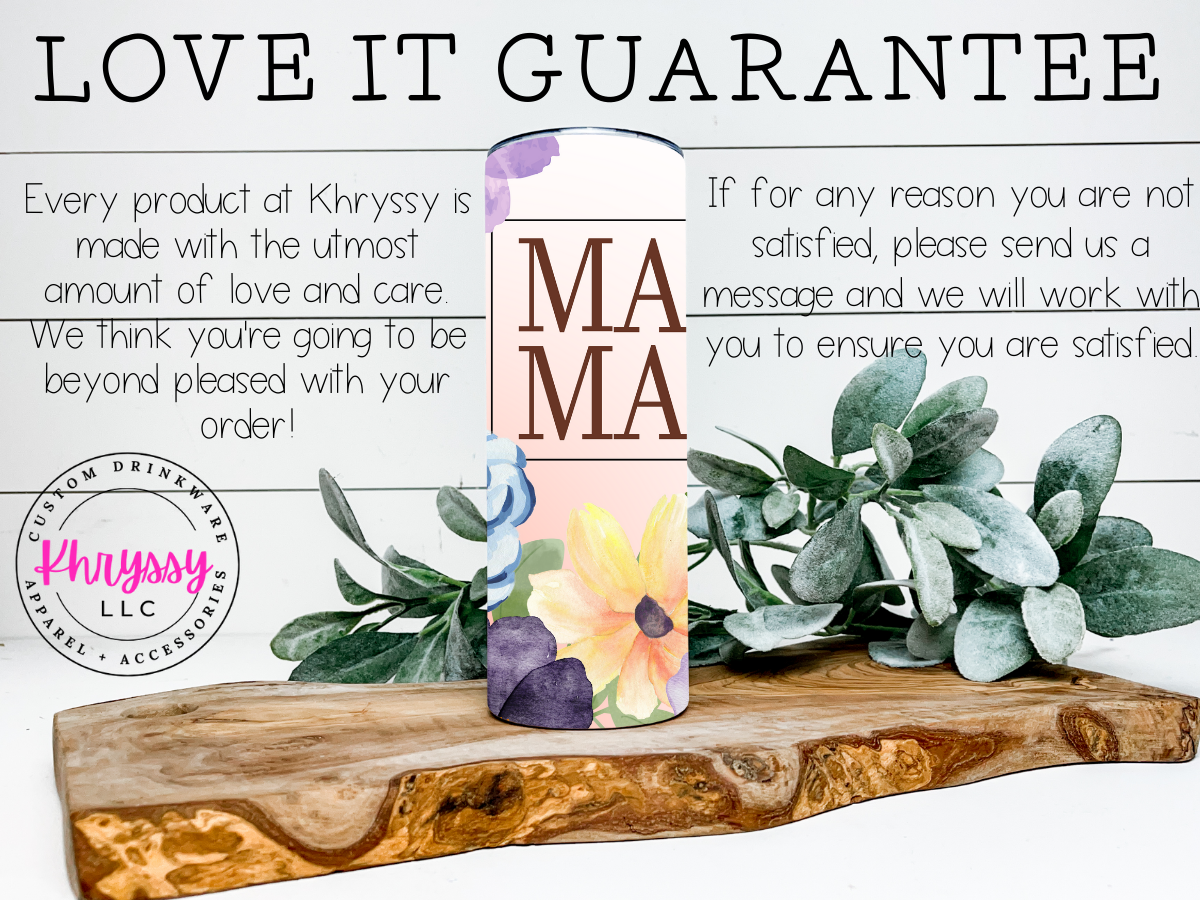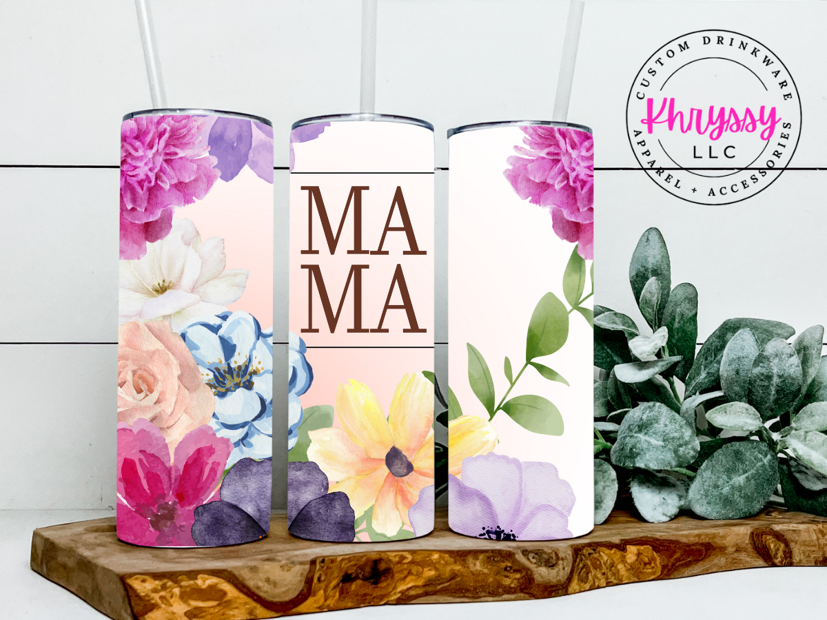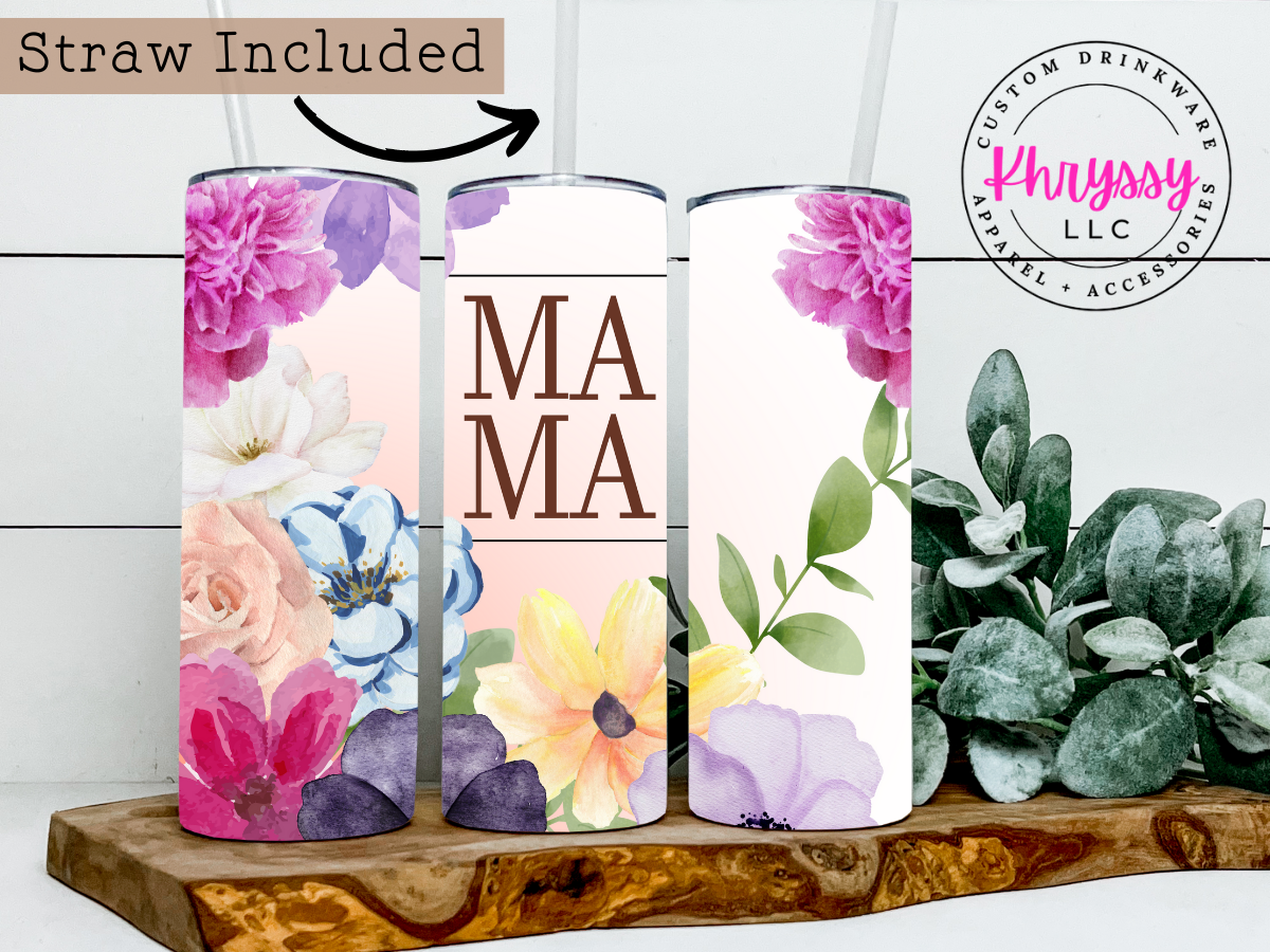 Sip stylishly from our Mama Blooms 20oz Custom Tumbler with Straw. Ideal for your water, iced coffee, hot tea, or your favorite beverage of choice!