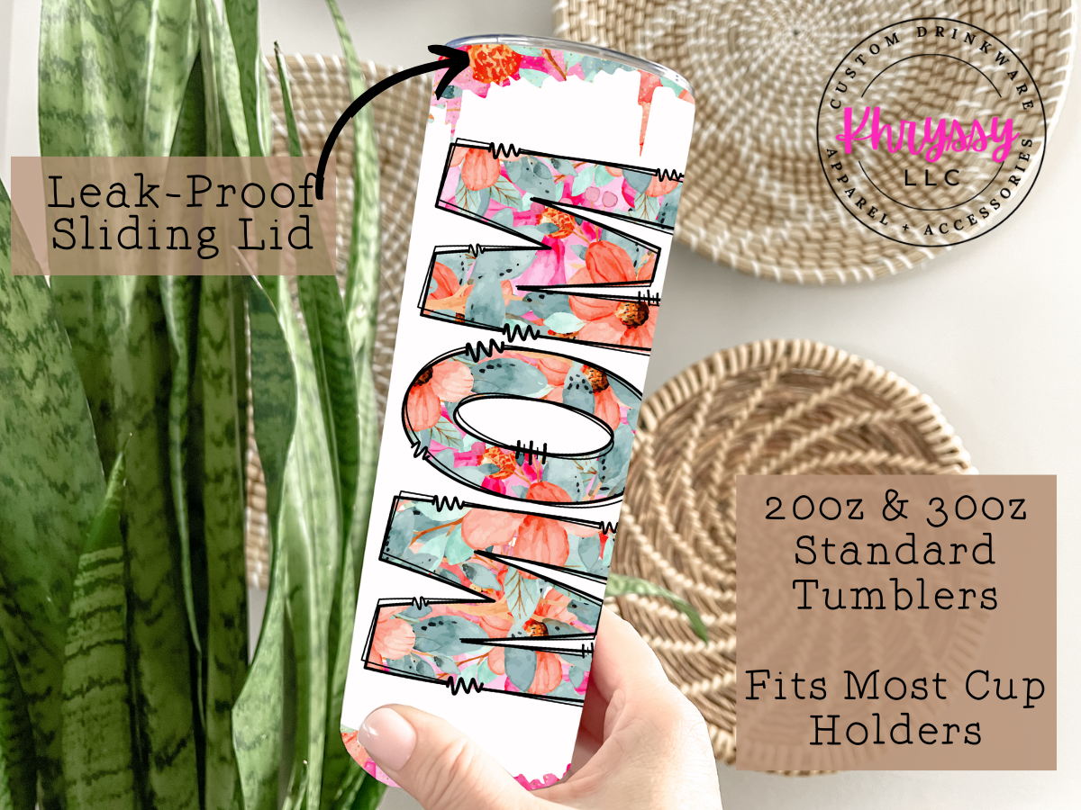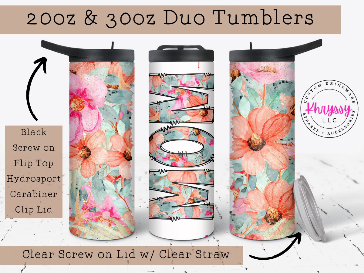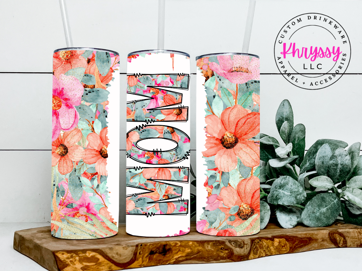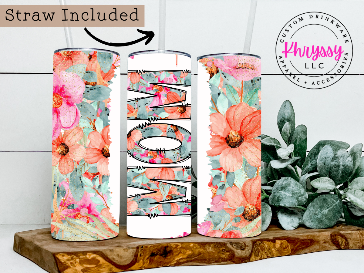 MOM Floral Bliss 20oz Tumbler with Straw, perfect for holding your favorite beverage! This tumbler is perfect for any coffee lover!