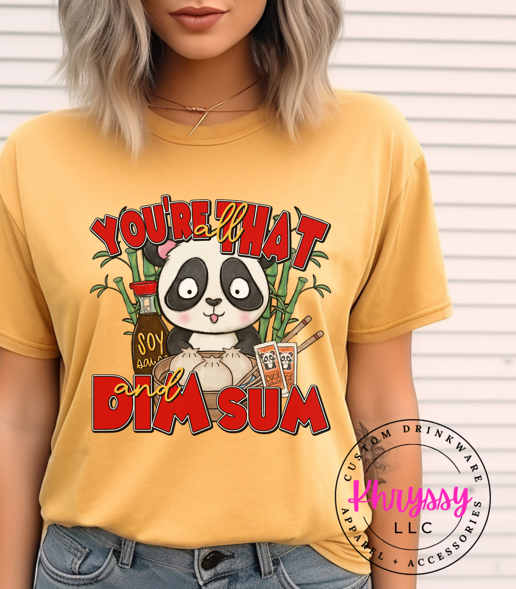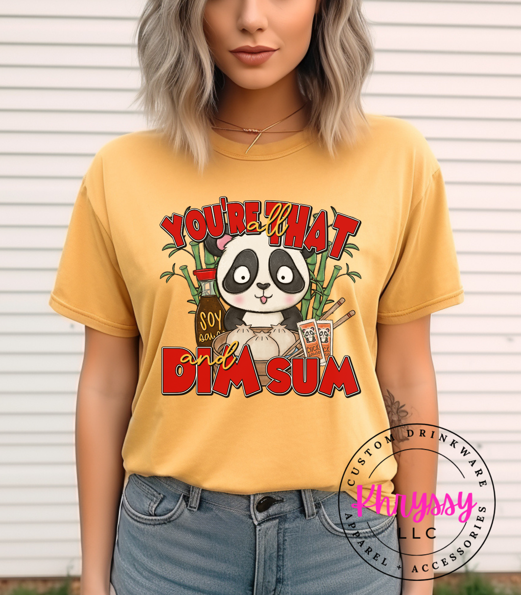 Treat yourself to the ultimate comfort and style with our All That And Dim Sum Unisex T-shirt. Perfect for anyone who loves delicious dim sum and a good laugh, this t-shirt is a must-have addition to your wardrobe. Its unique design is sure to turn heads and its soft material will keep you feeling cozy all day long. Don't dim your style - grab one today!
