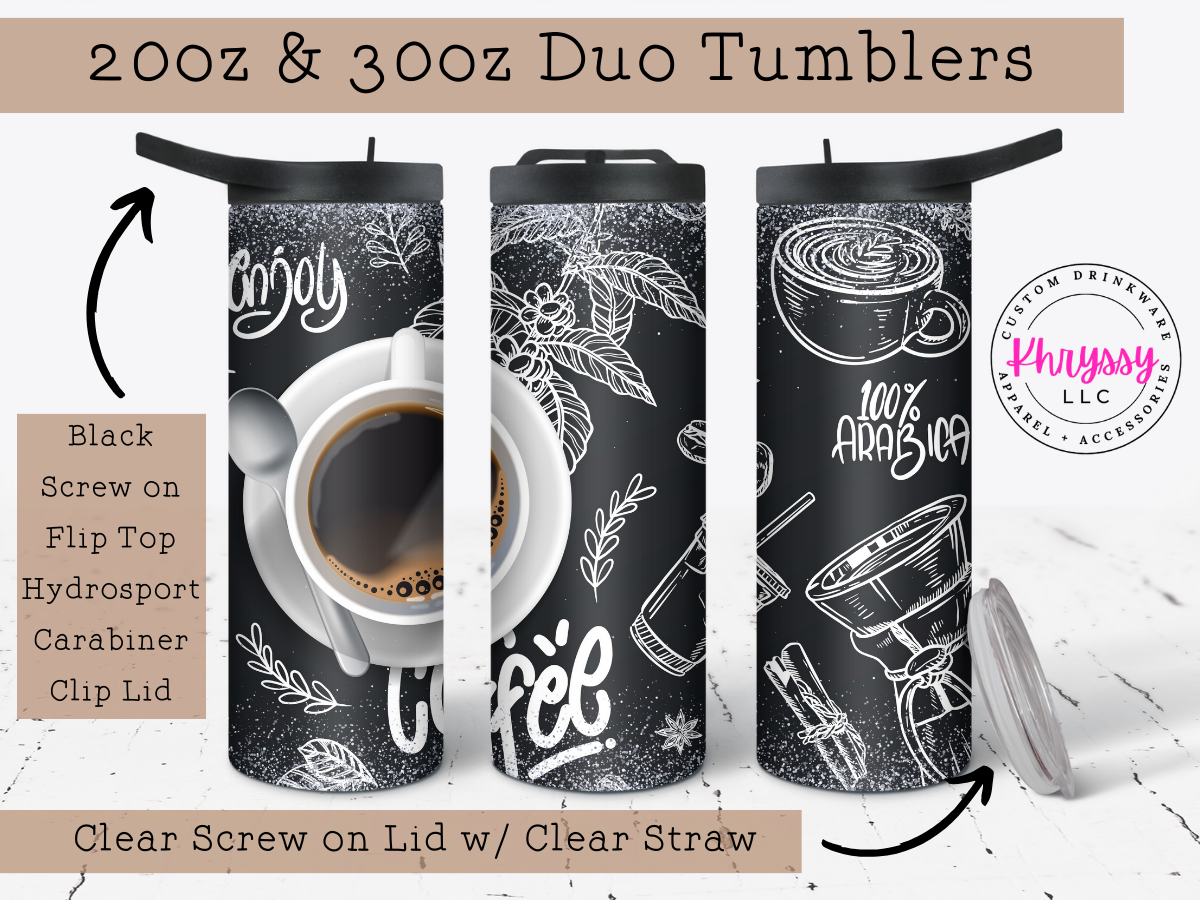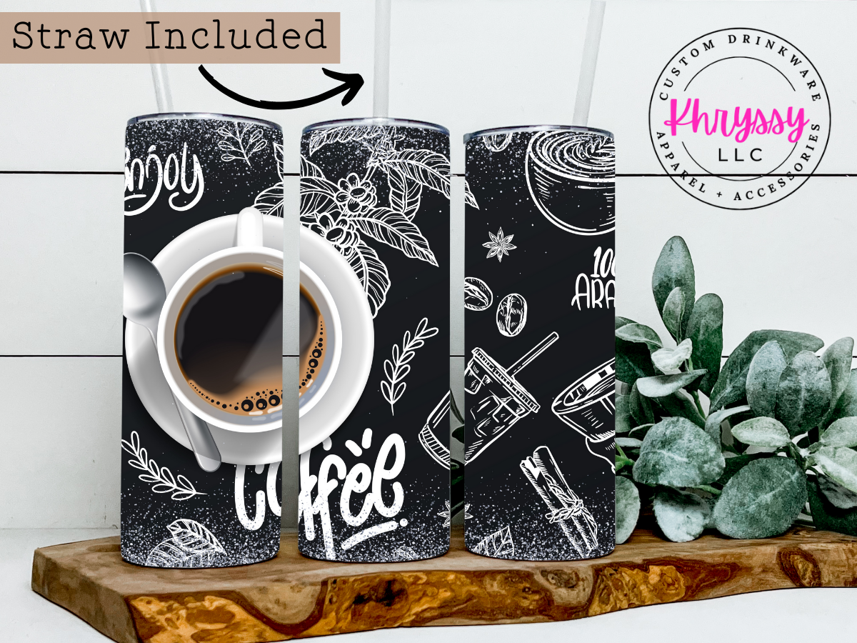 Coffee House 20oz Tumbler with Straw, perfect for holding your favorite beverage! This tumbler is perfect for any cat lover!