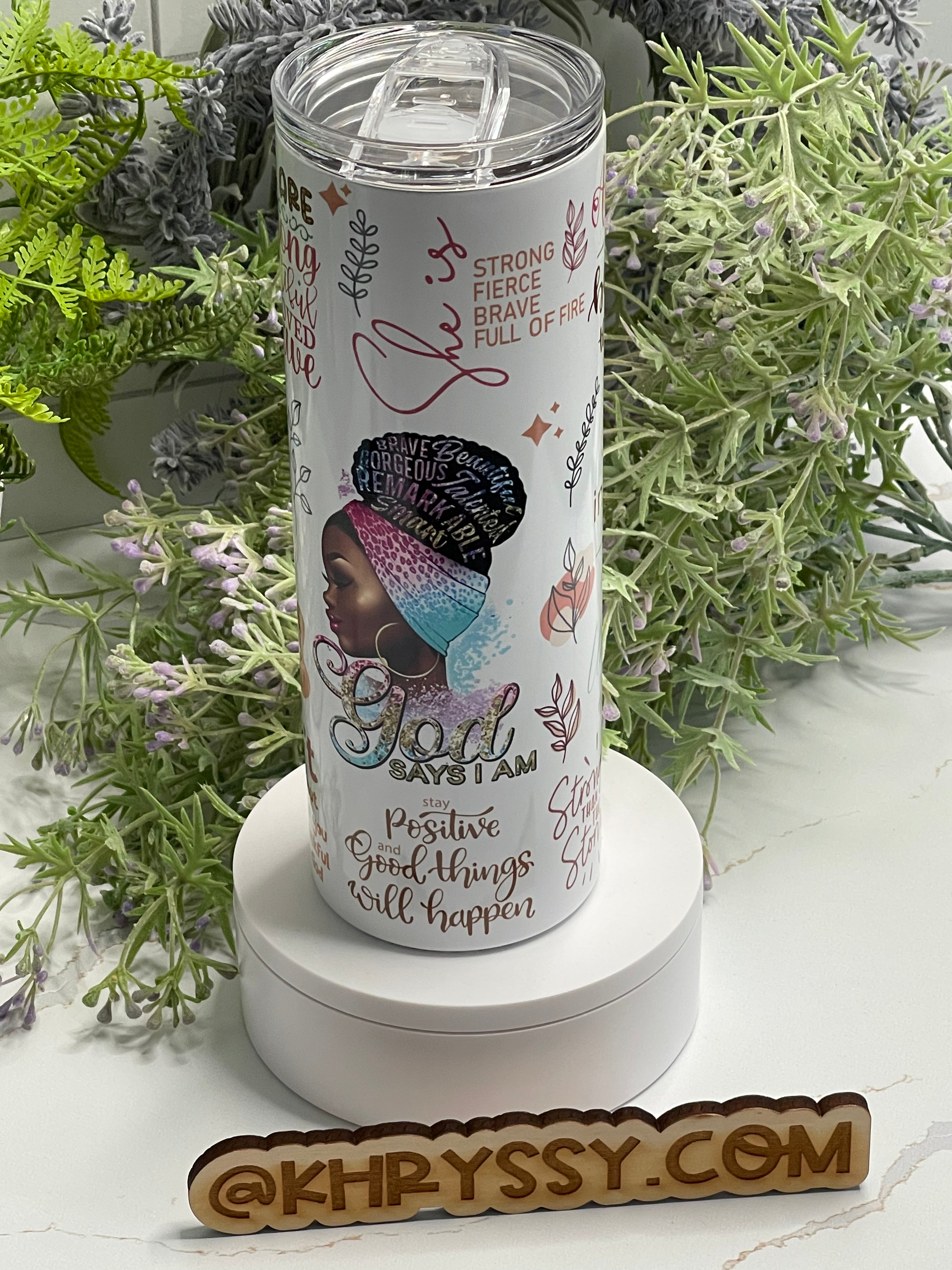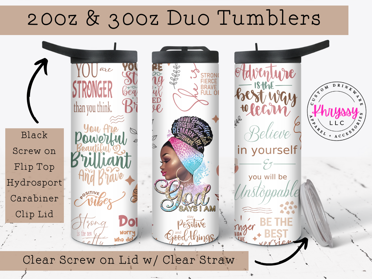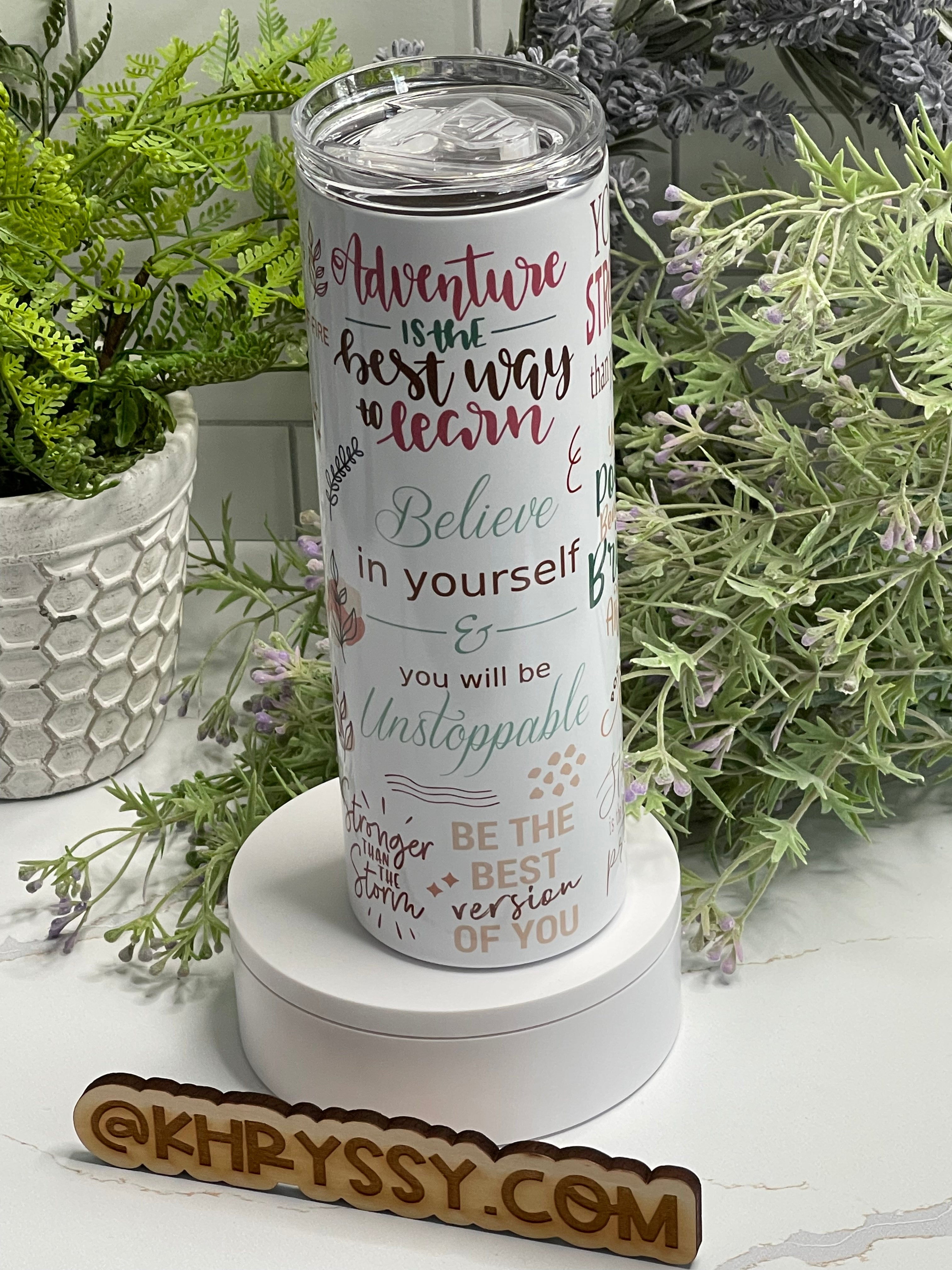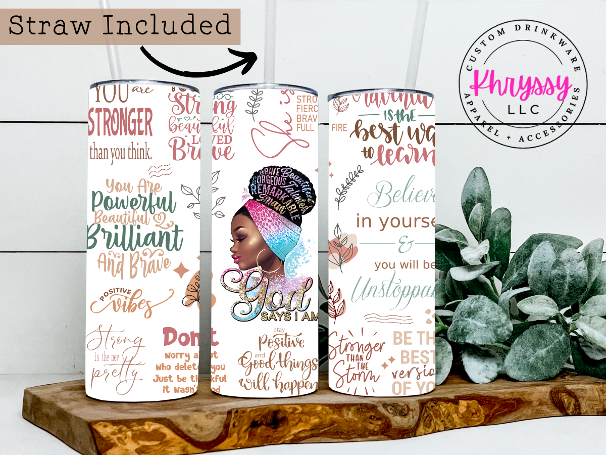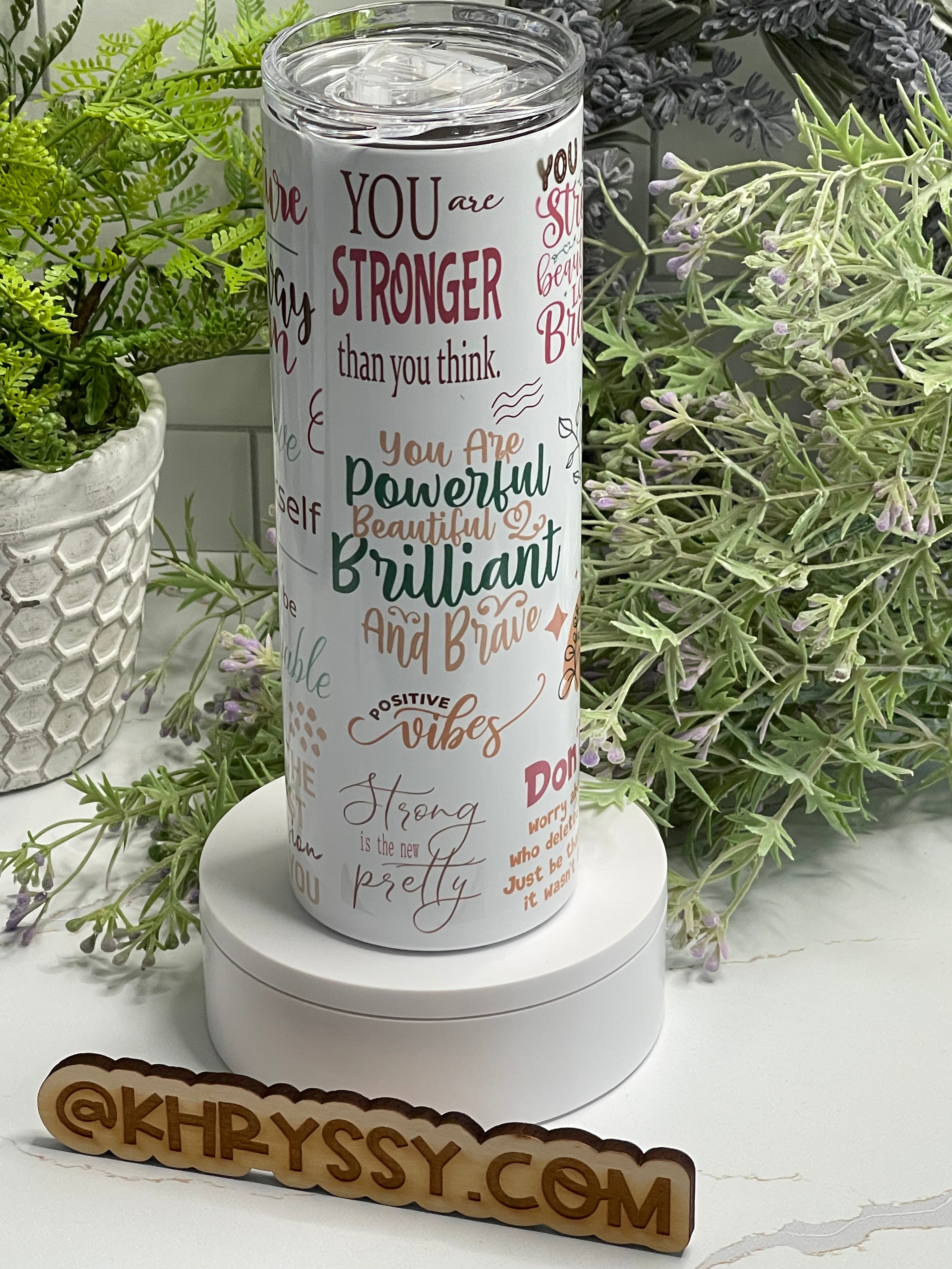 EmpowerHER 20oz Tumbler with Straw, perfect for holding your favorite beverage! This tumbler is perfect for any coffee lover!