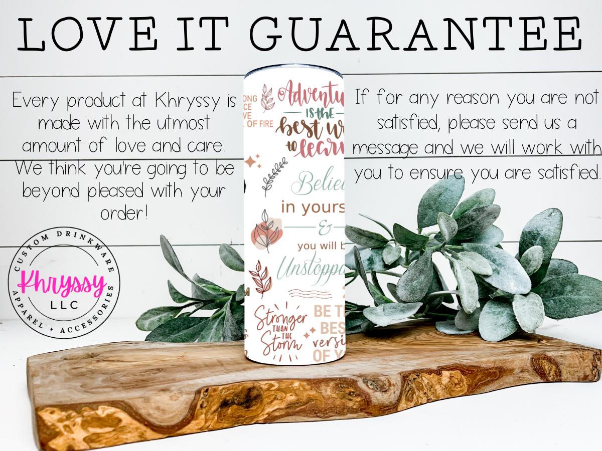 Our tumblers are printed with top-of-the-line permanent ink in our Simpsonville, South Carolina studio. The sublimation printing process we employ ensures that the design on our tumblers is not just surface-level, but truly integrated into the material itself. This means that you can enjoy your favorite designs without worrying about them fading, scratching, or rubbing off. From vibrant colors to intricate patterns, our sublimation tumblers showcase stunning, high-definition graphics that are sure to catch everyone's eye.
