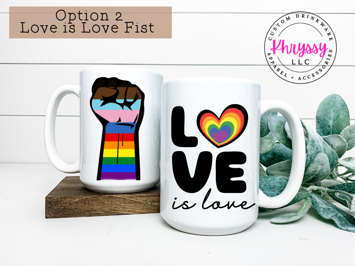 Celebrate the beautiful message of acceptance and equality with our Love is Love 15oz Coffee Mug. This mug is a symbol of without boundaries, reminding us that love comes in all forms and should celebrated unconditionally.