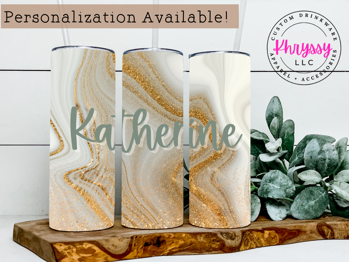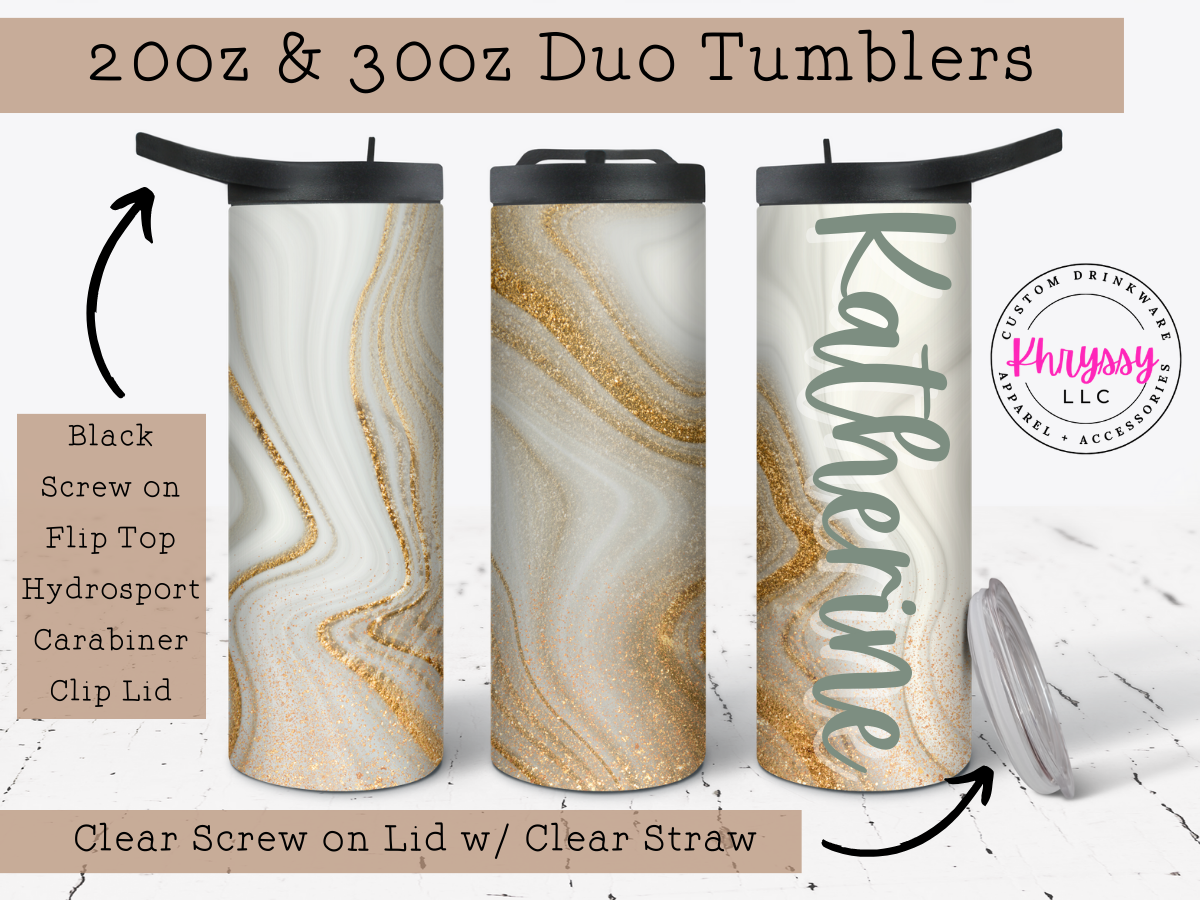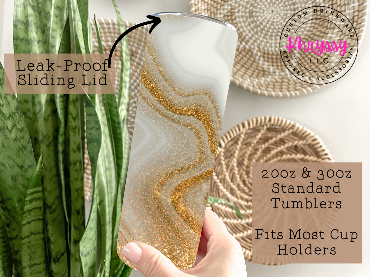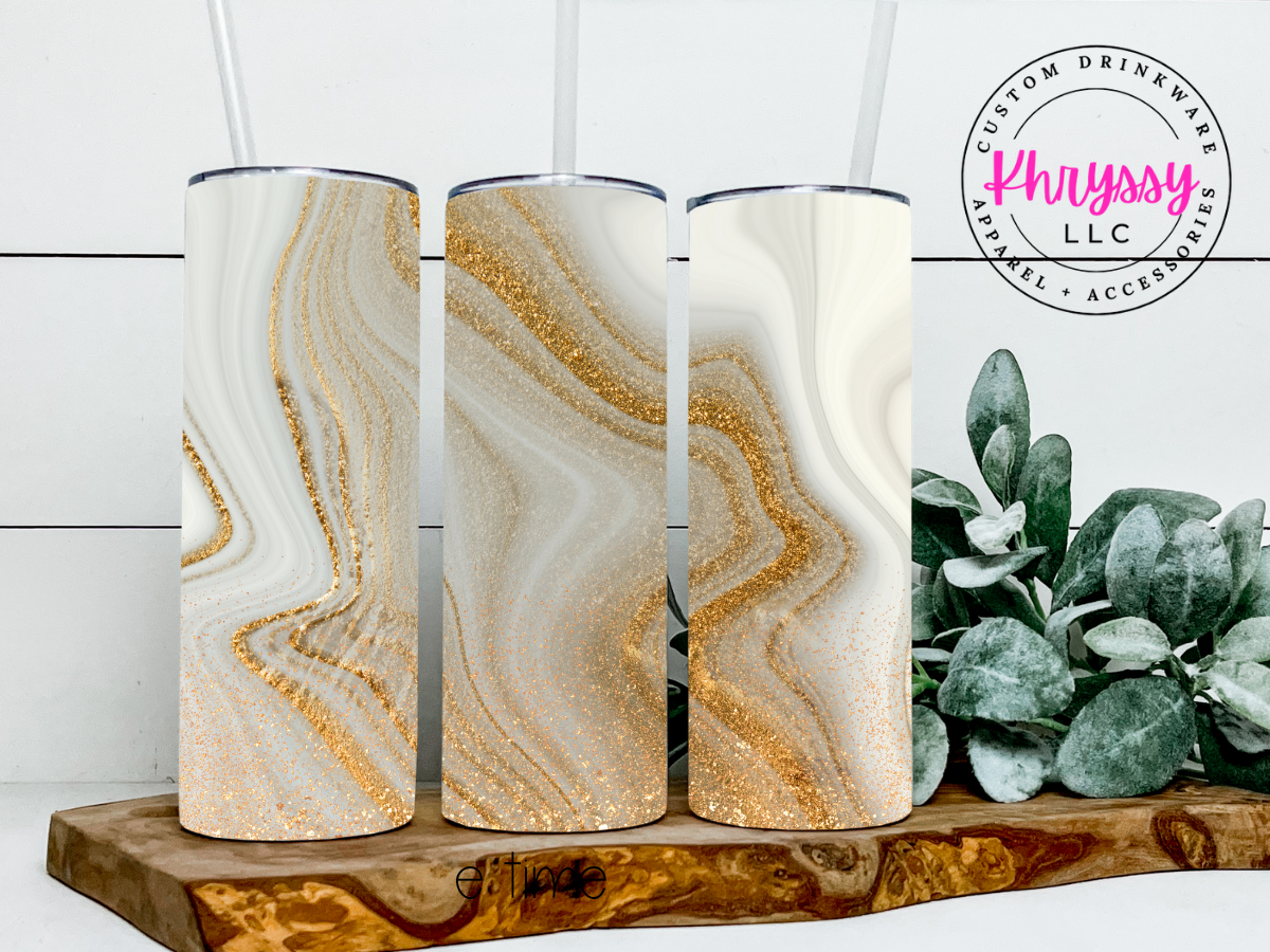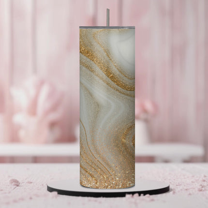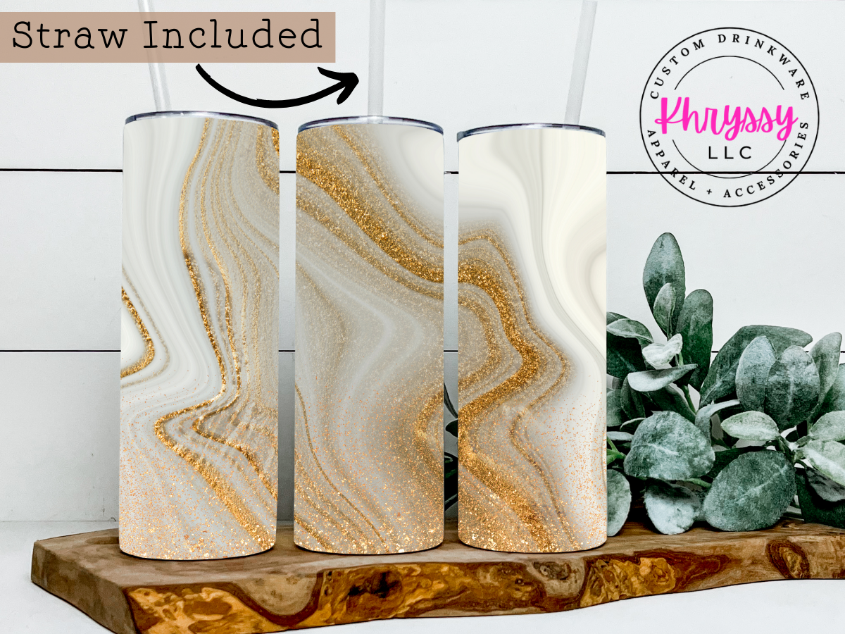 White and Gold Marble 20oz Tumbler with Straw, perfect for holding your favorite beverage! This tumbler is perfect for any coffee lover!