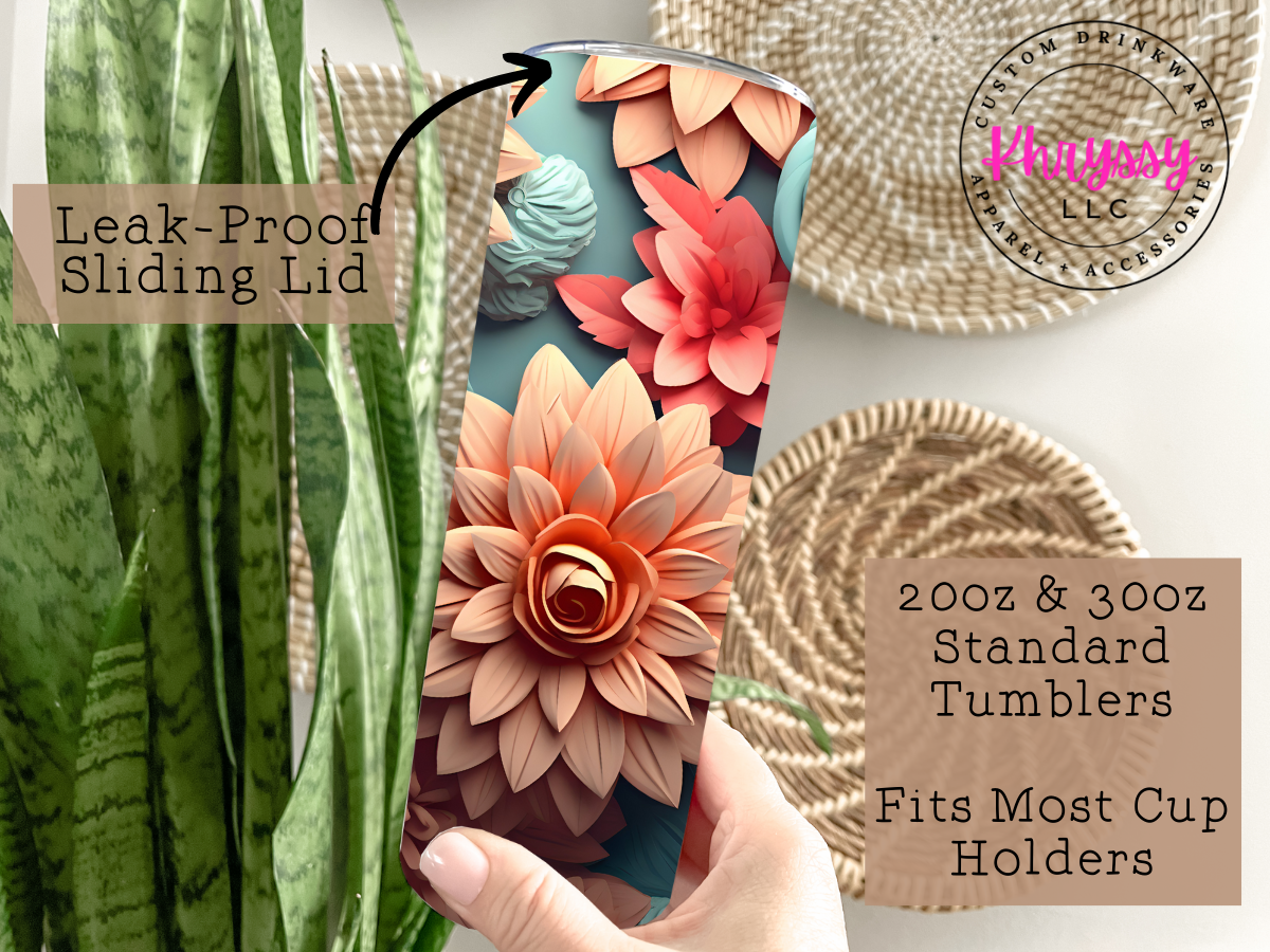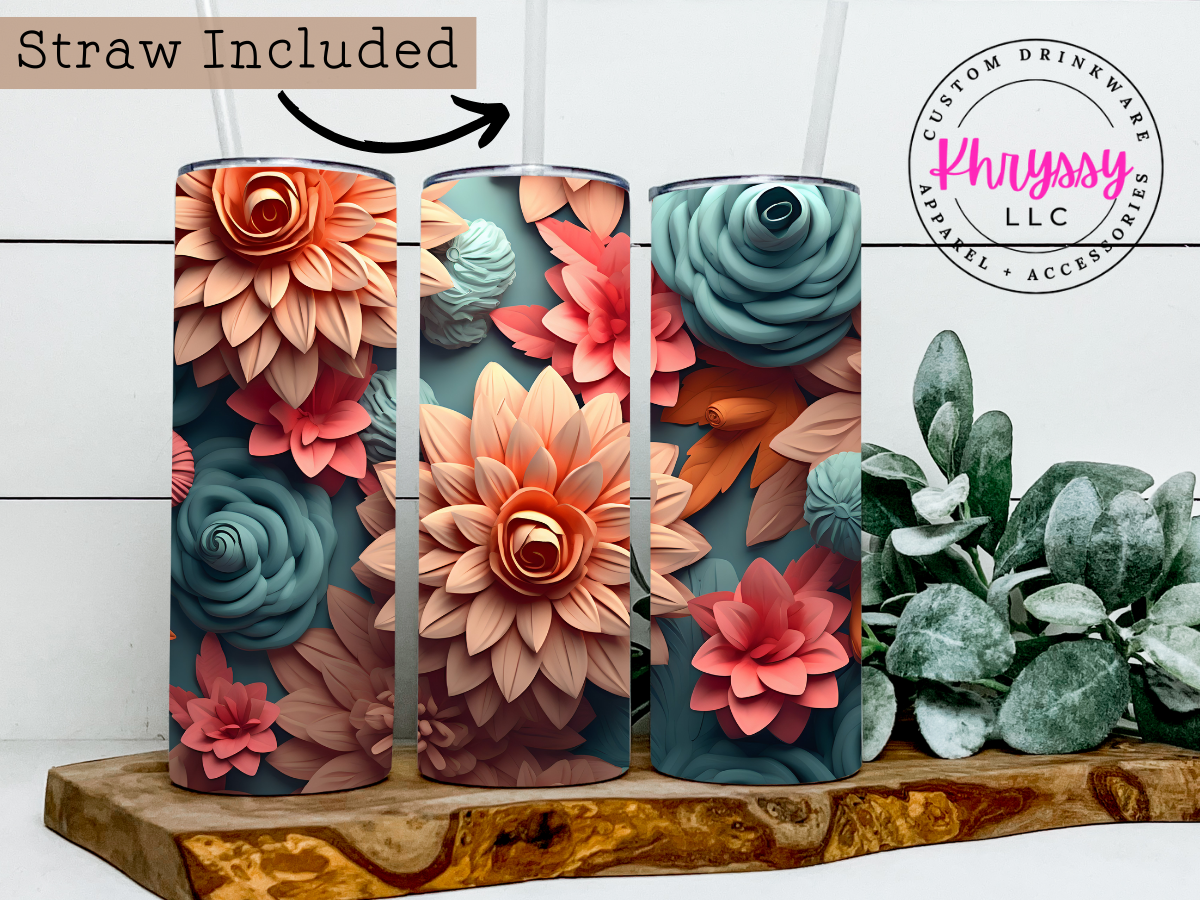 Enigmatic Blossom 20oz Tumbler with Straw, perfect for holding your favorite beverage! This tumbler is perfect for any coffee lover!