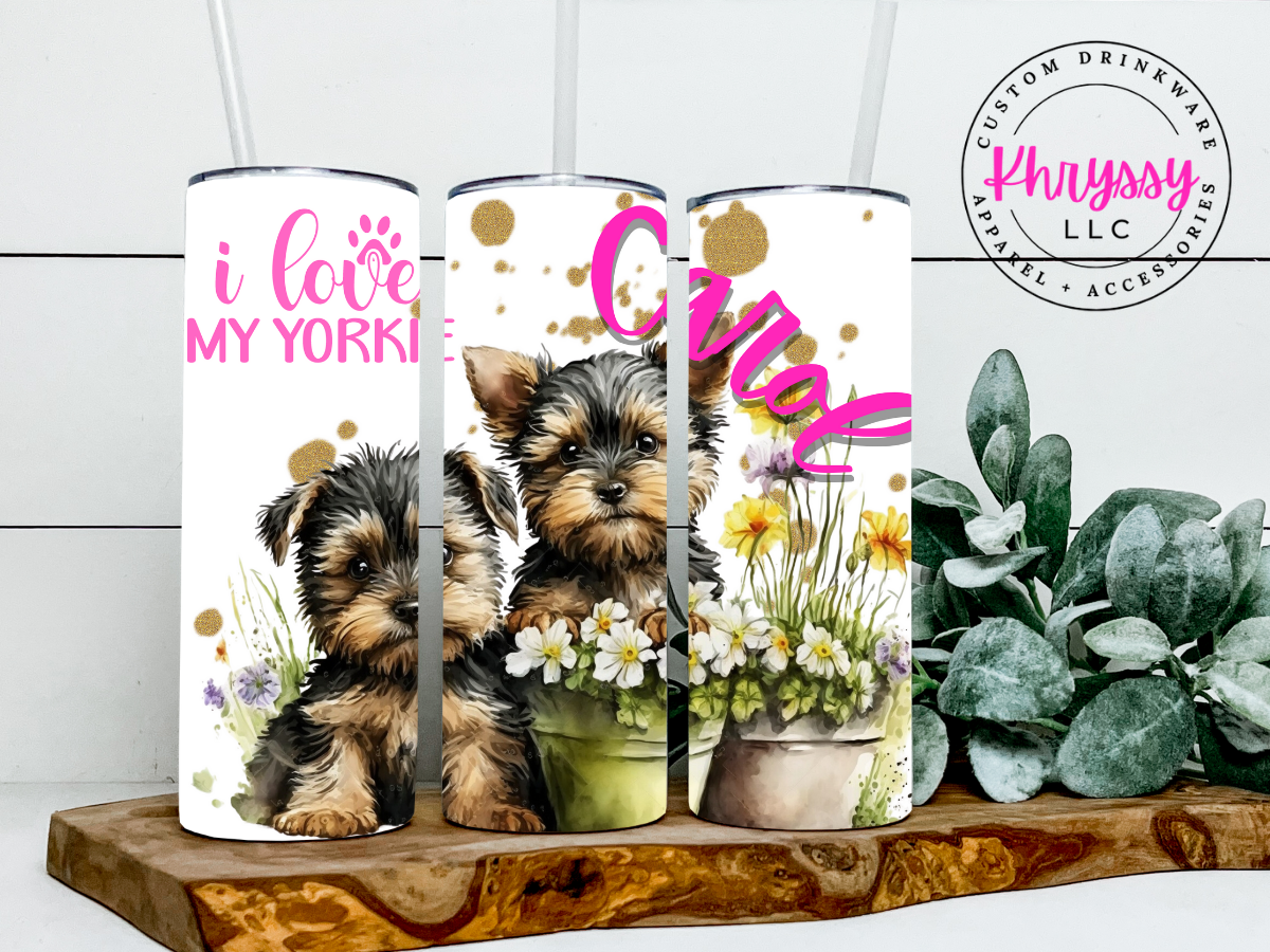 Yorkie and Friend 20/30oz Personalized PINK Tumbler, perfect for holding your favorite beverage! This tumbler is perfect for any Yorkie lover!
