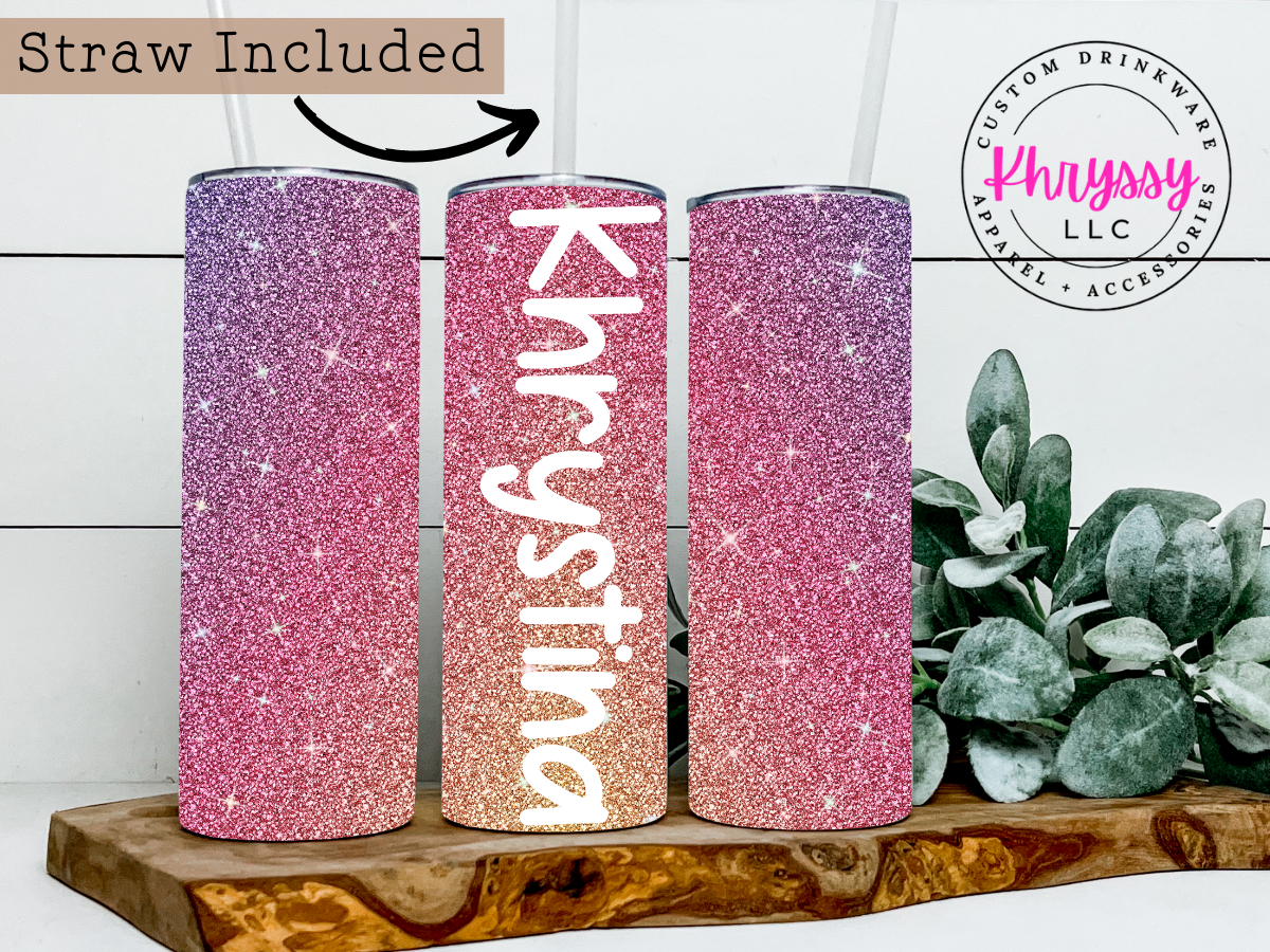 Pink Ombre Personalized 20oz Tumbler with Straw, perfect for holding your favorite beverage! This tumbler is perfect for any coffee lover!
