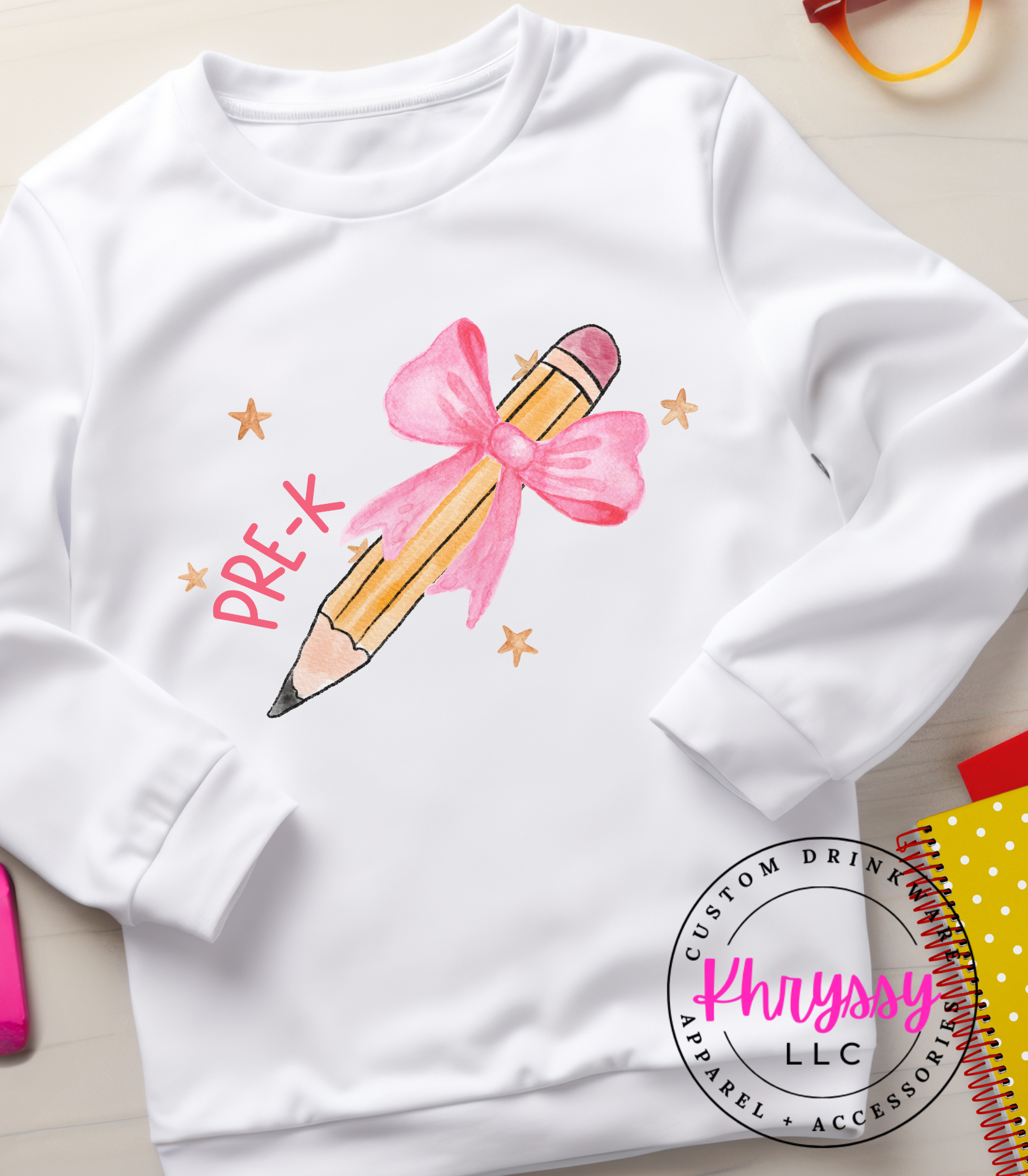 Stand out with the large pencil graphic adorned with a charming pink bow, accompanied by the inspiring text 'SECOND GRADE' and 'SIXTH GRADE.' The stars add a touch of magic to your ensemble, making you shine bright.