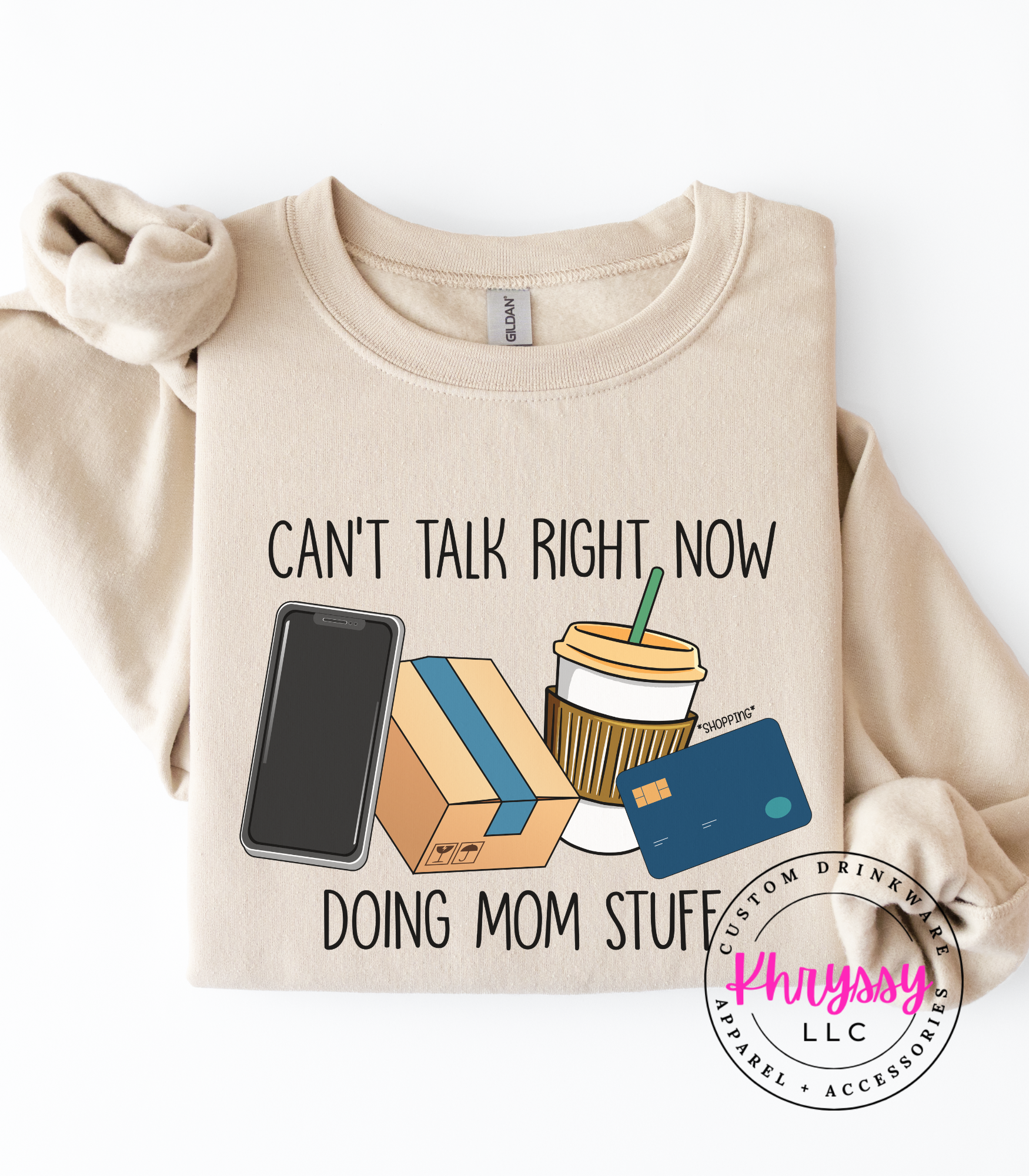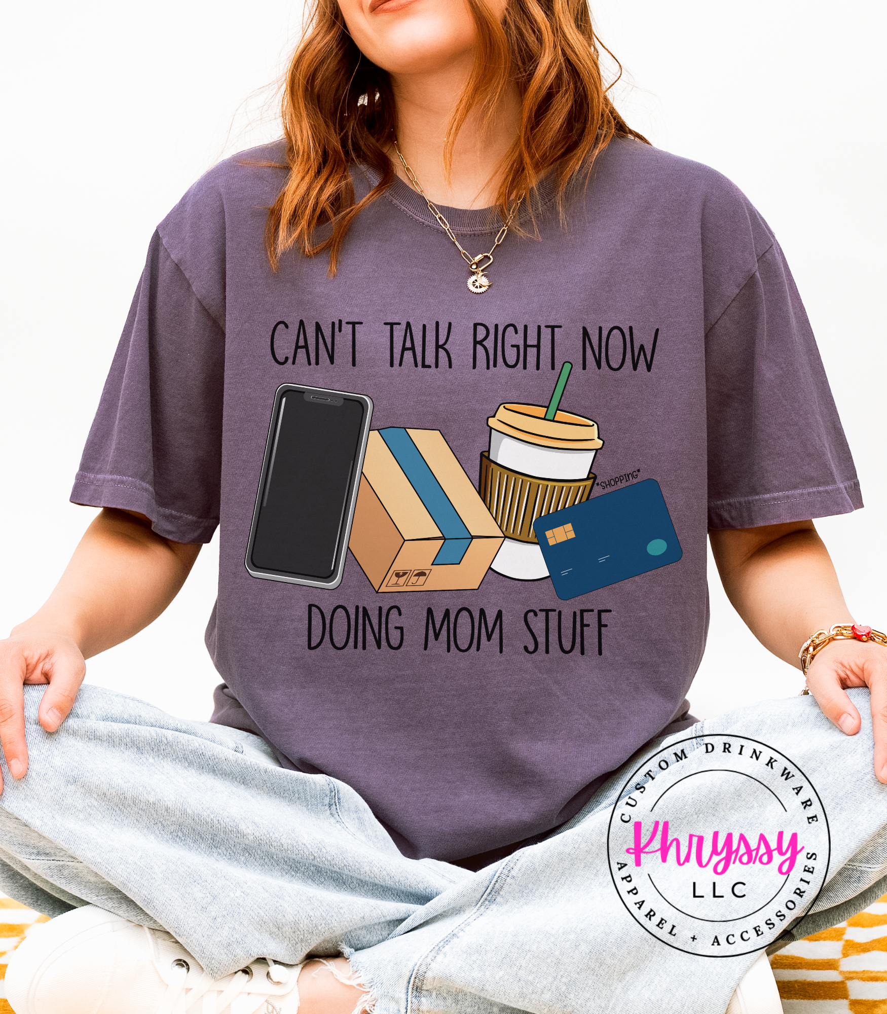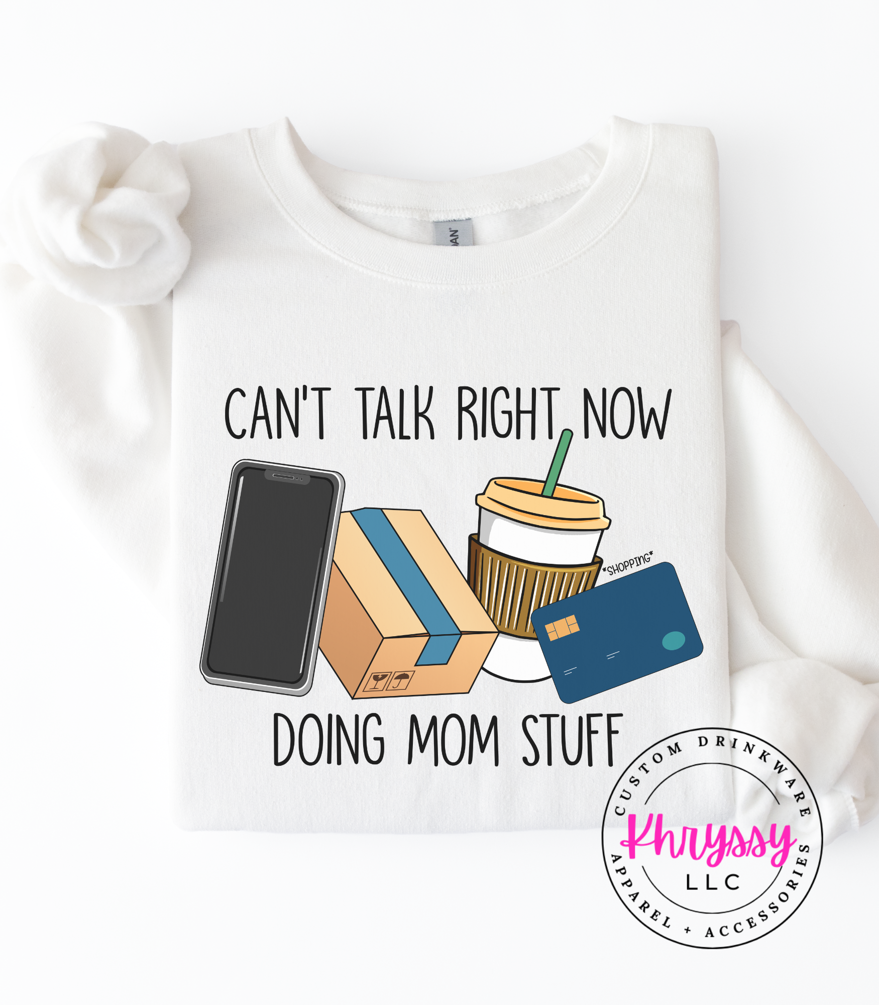 Declare your season with a playful cluster of phone, delivery box, iced coffee, and card icons that reads “Can’t Talk Right Now Doing Mom Stuff.” Bright, friendly visuals and clean lettering suggest vibrant color retention and a soft, broken-in feel for everyday movement. Perfect for carline duty, running errands, school pickups, or coffee dates—this makes it easy to set boundaries with a wink while staying connected to real-life rhythms. Buyers pick this to validate busy seasons, spark smiles, and gift fellow parents a funny, useful reminder of priorities and hustle.