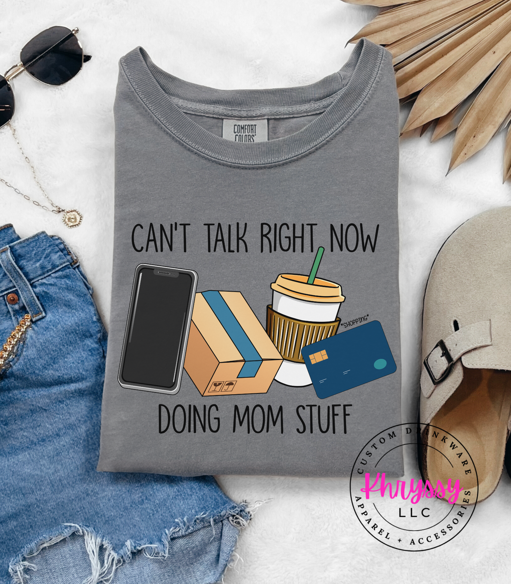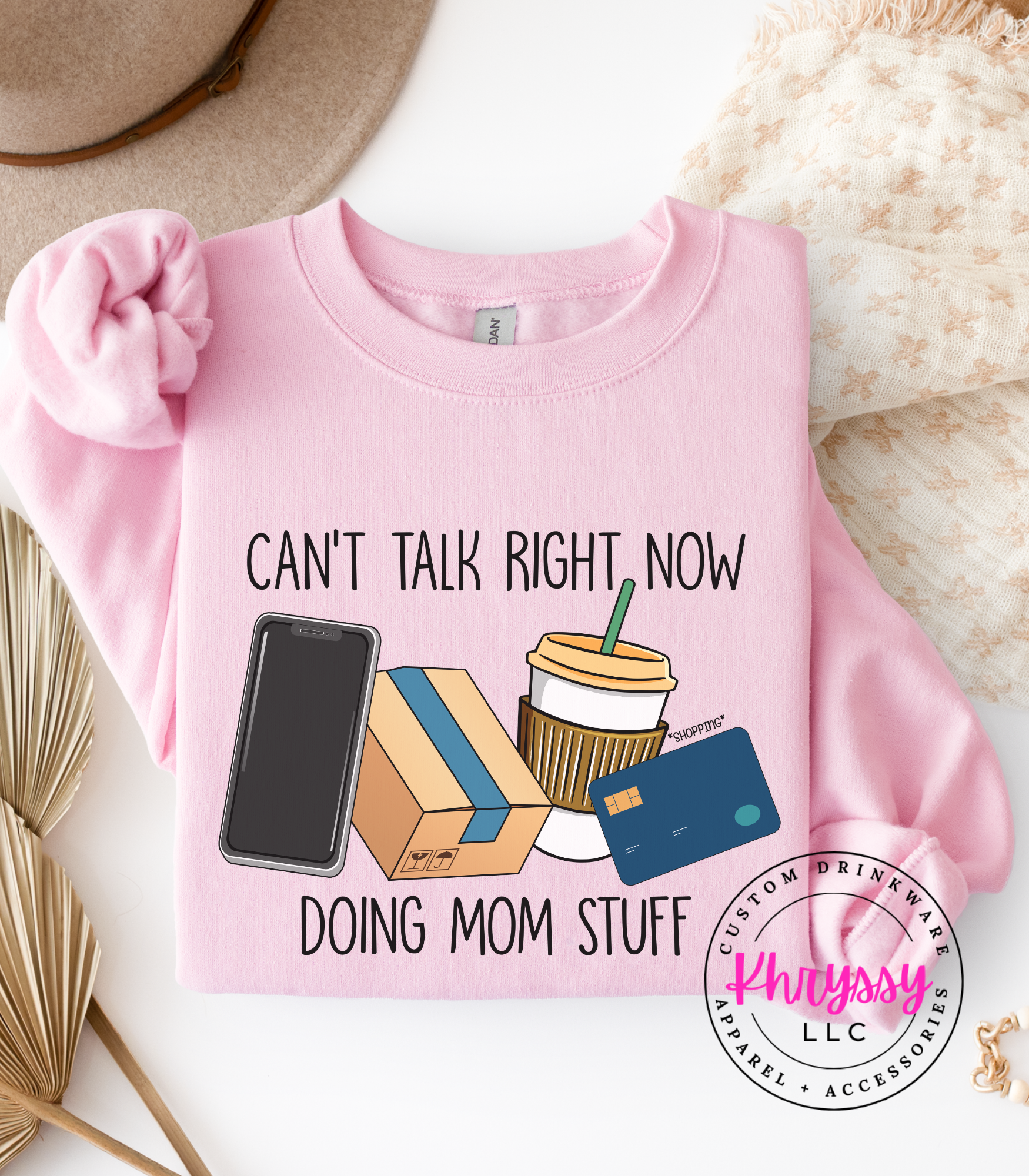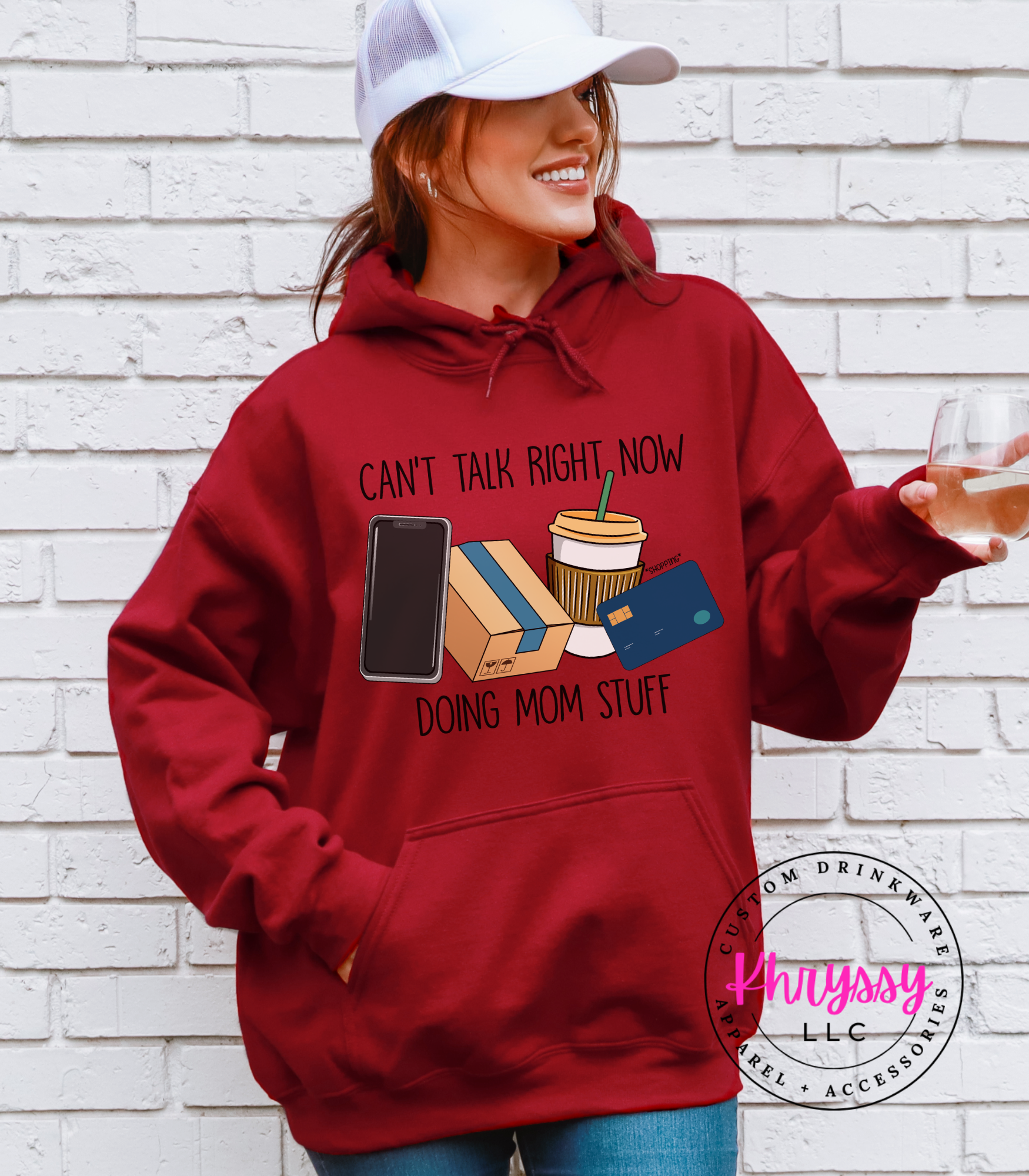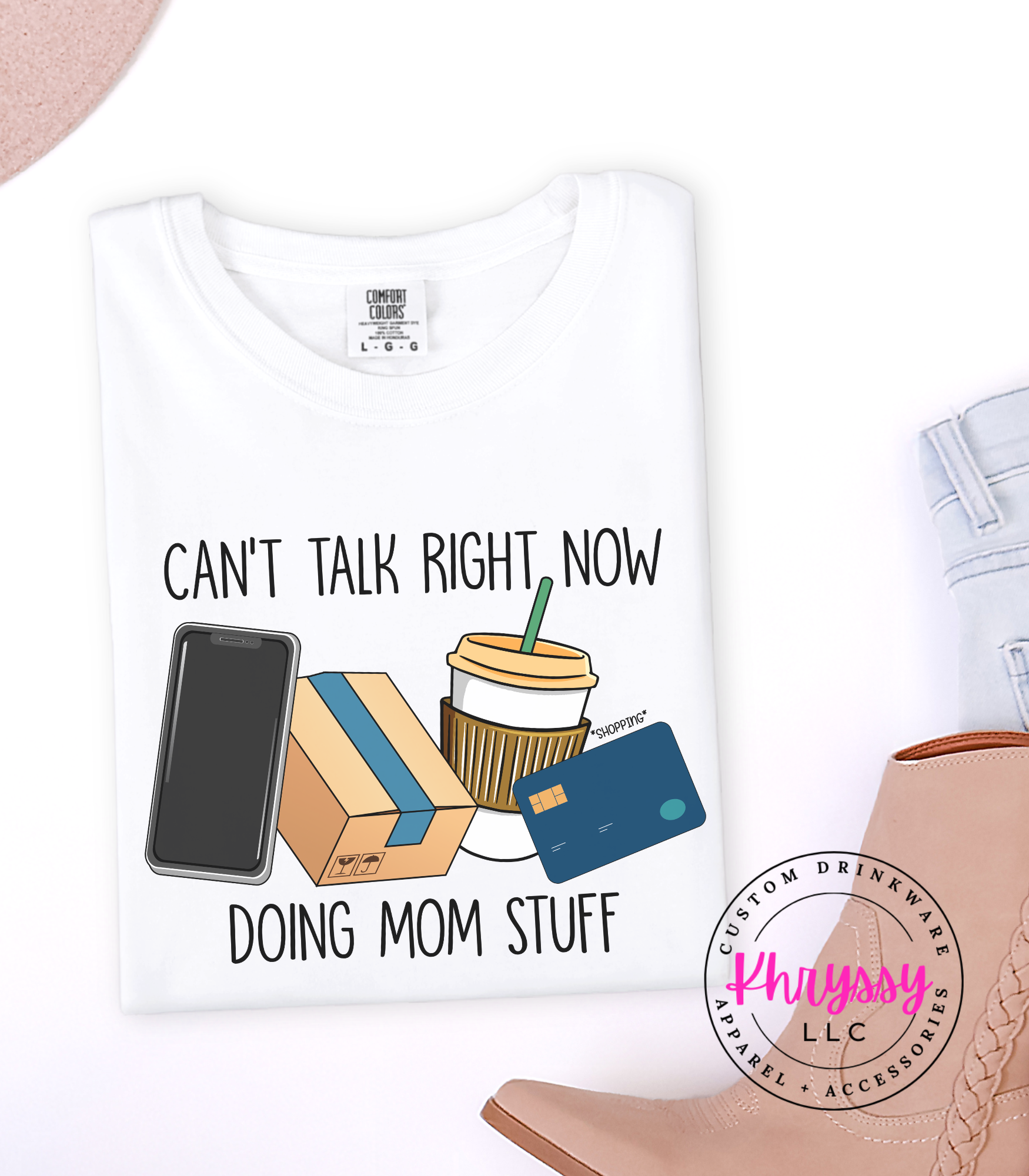 Declare your season with a playful cluster of phone, delivery box, iced coffee, and card icons that reads “Can’t Talk Right Now Doing Mom Stuff.” Bright, friendly visuals and clean lettering suggest vibrant color retention and a soft, broken-in feel for everyday movement. Perfect for carline duty, running errands, school pickups, or coffee dates—this makes it easy to set boundaries with a wink while staying connected to real-life rhythms. Buyers pick this to validate busy seasons, spark smiles, and gift fellow parents a funny, useful reminder of priorities and hustle.