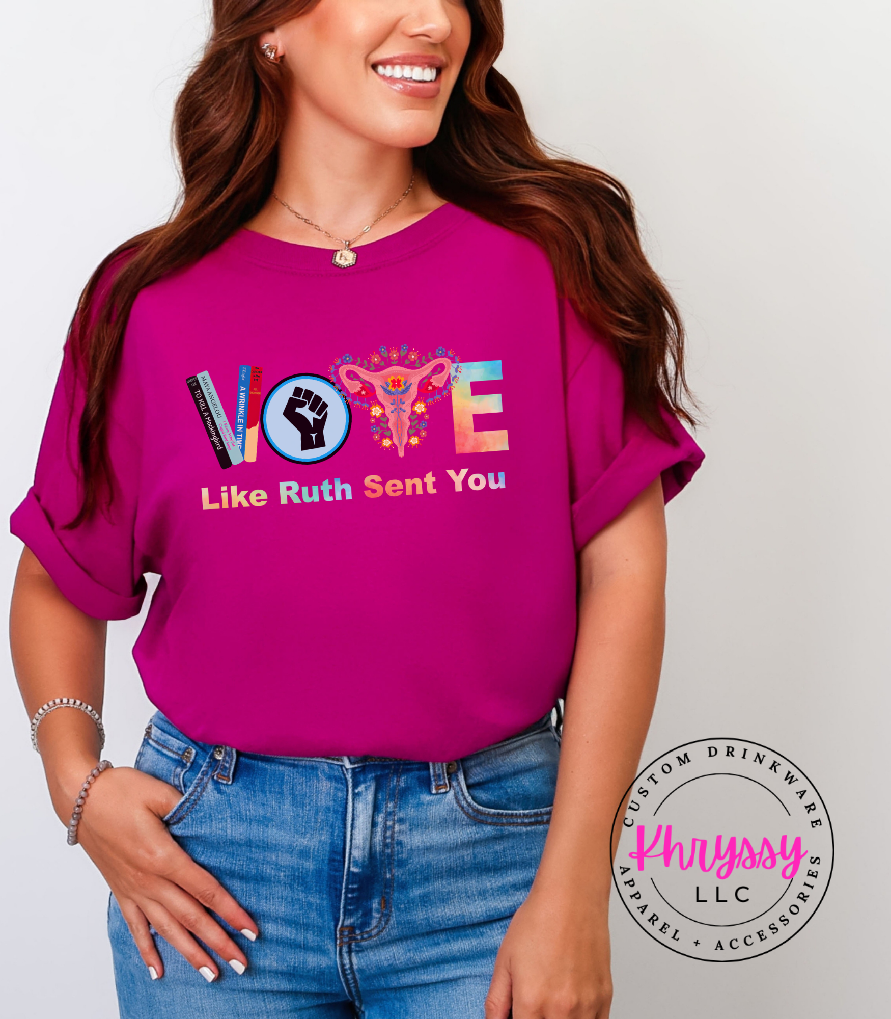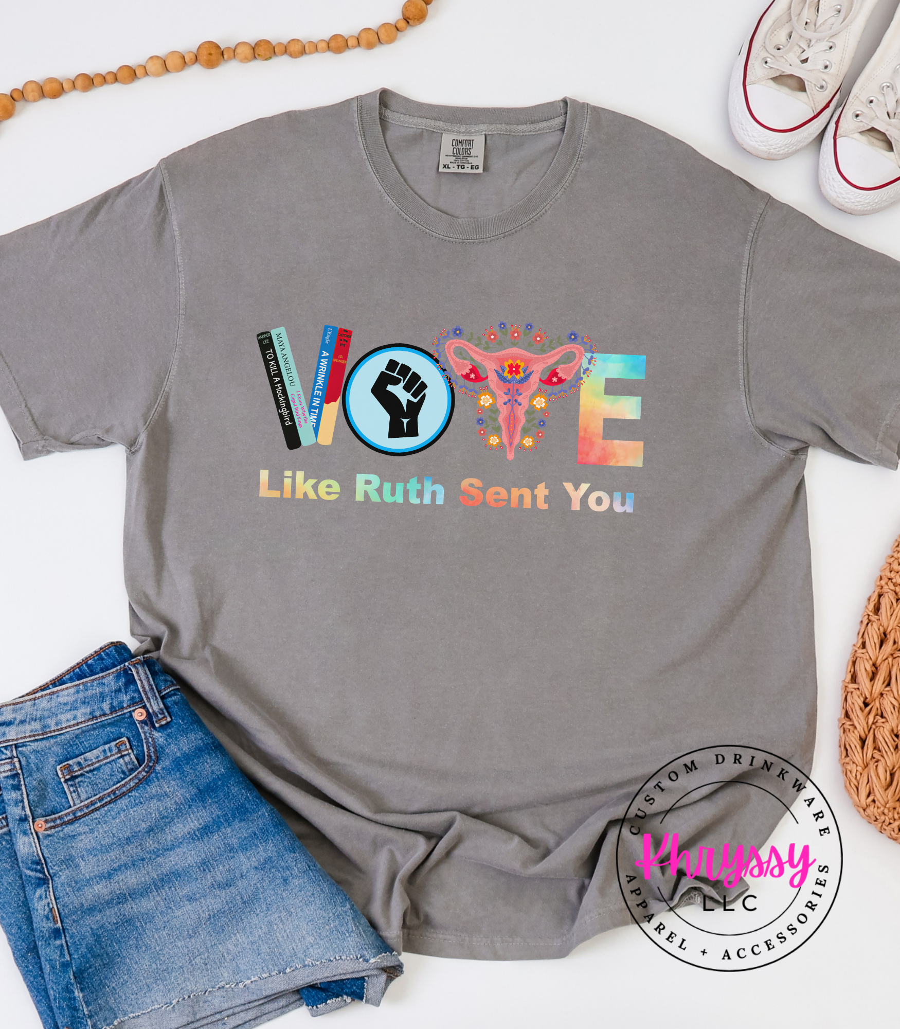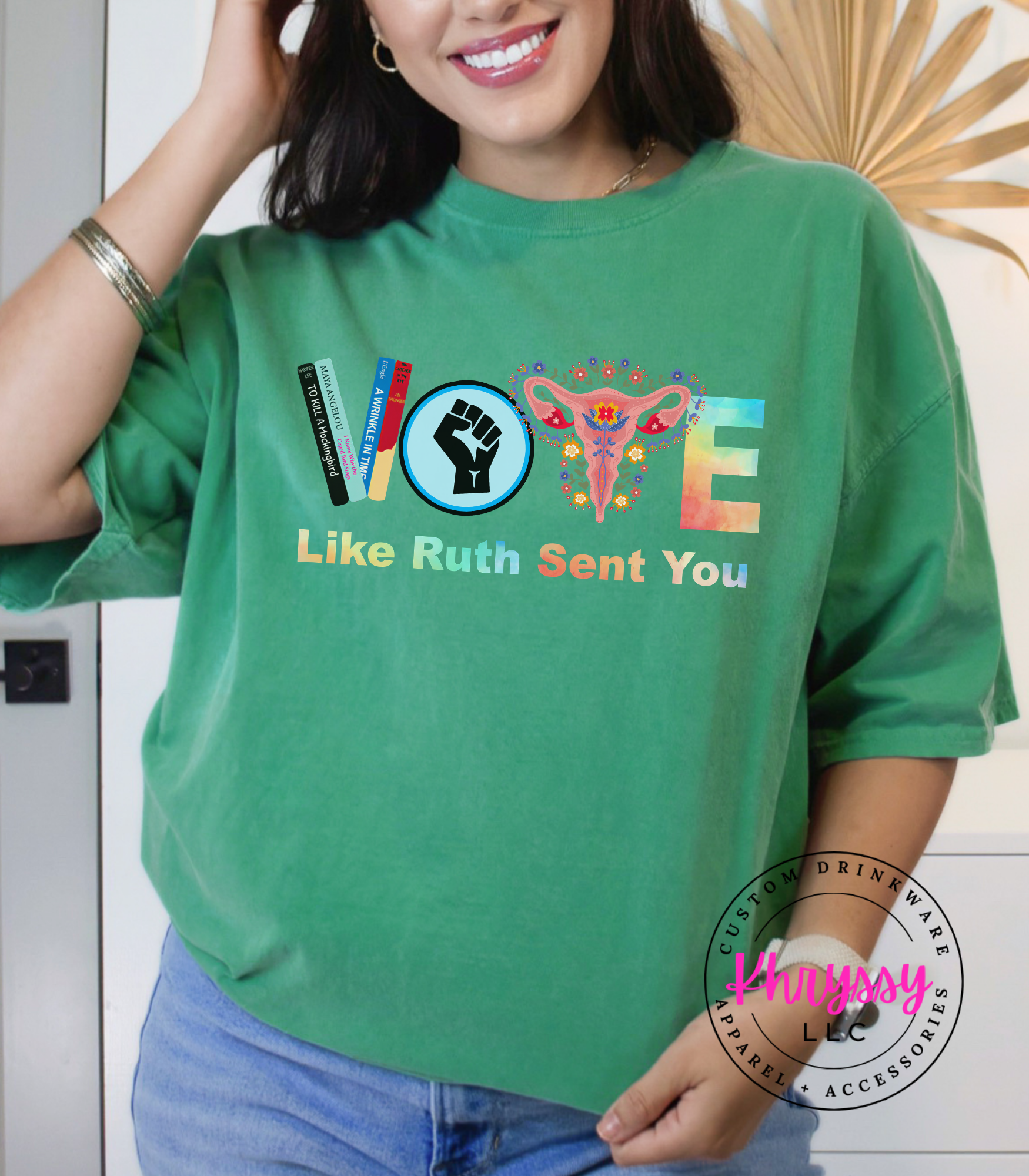 A vibrant, typographic take on a civic call blends bold color with symbolic elements to create an uplifting, visible message. Quality cues — crisp multicolor saturation, sturdy finish, and soft-hand feel — promise lasting wear and lively visual impact for rallies, marches, community gatherings, or everyday advocacy. The comfortable cut supports extended wear during outreach or events, while the upbeat palette invites connection and optimism. For customers who want to fuse passion with playful confidence, this piece makes a clear, spirited statement that encourages participation and solidarity.