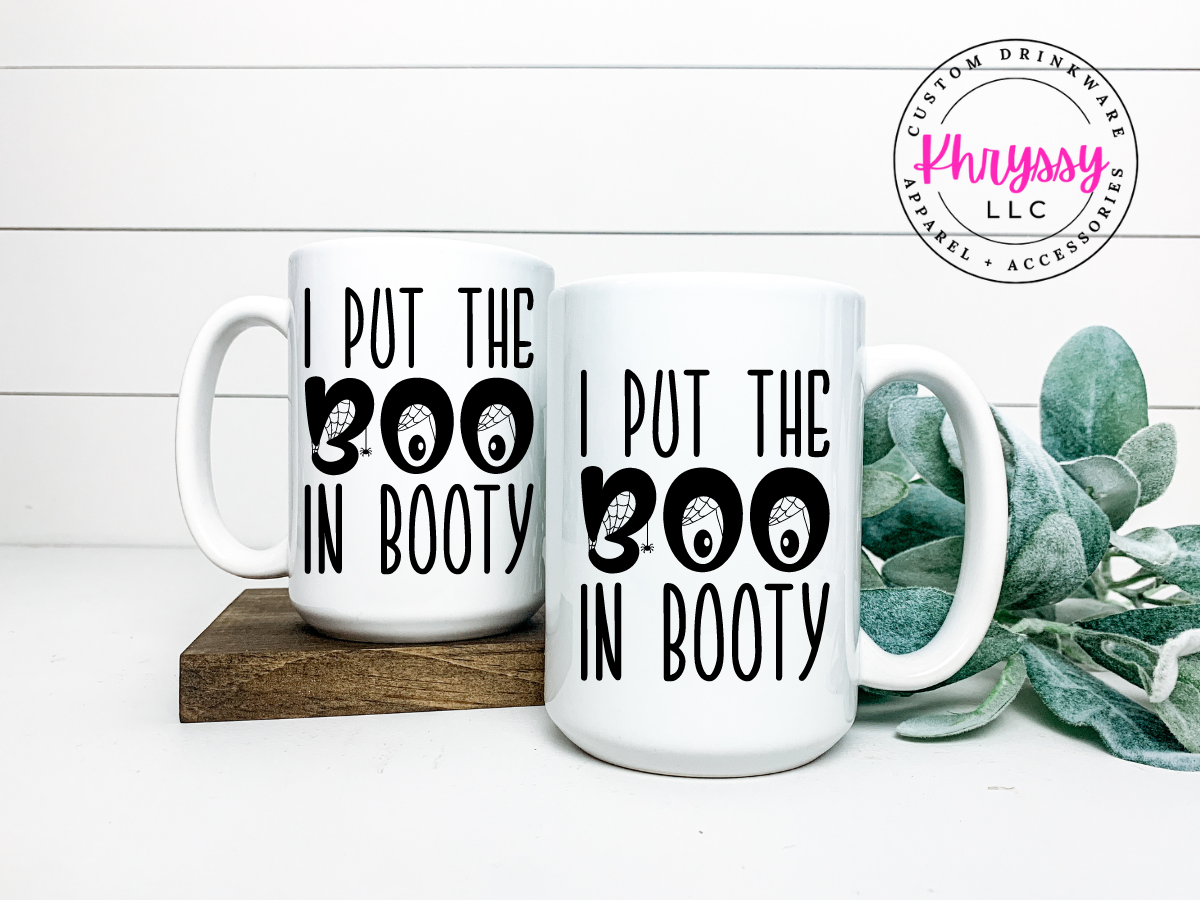 Introducing our I Put The Boo In Booty 15oz Coffee Mug, a sassy and playful way to add some fun to your daily coffee experience. With the bold statement I Put The Boo In Booty 15oz Coffee Mug printed on the surface, this 15oz mug is sure to bring a smile to your face every time you take a sip.