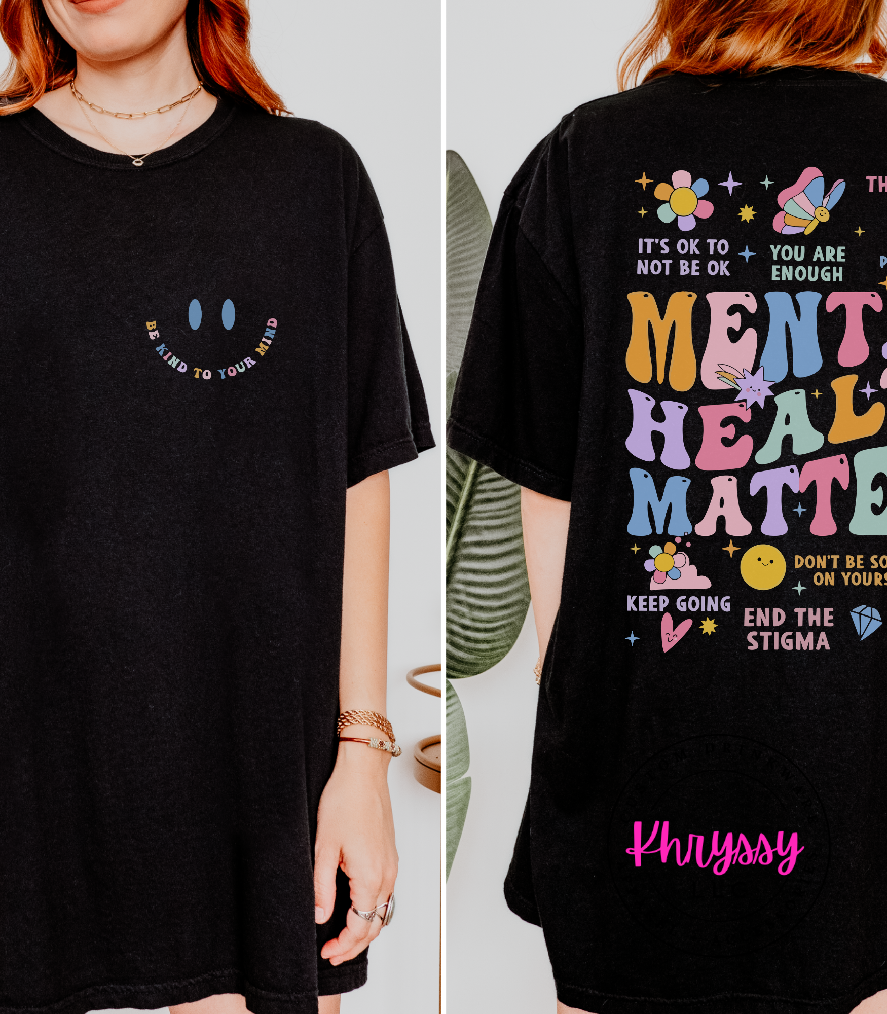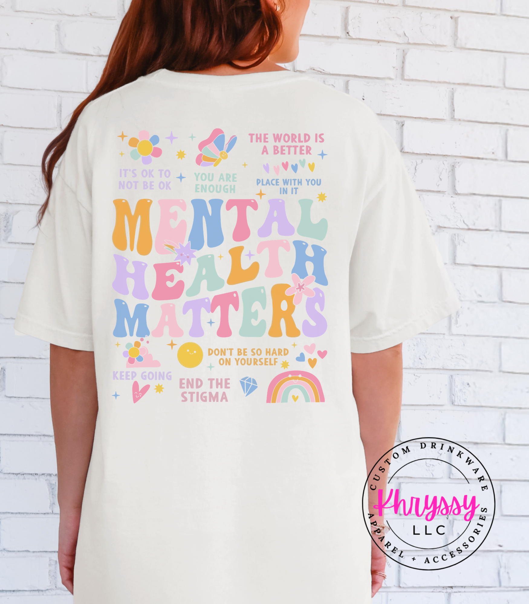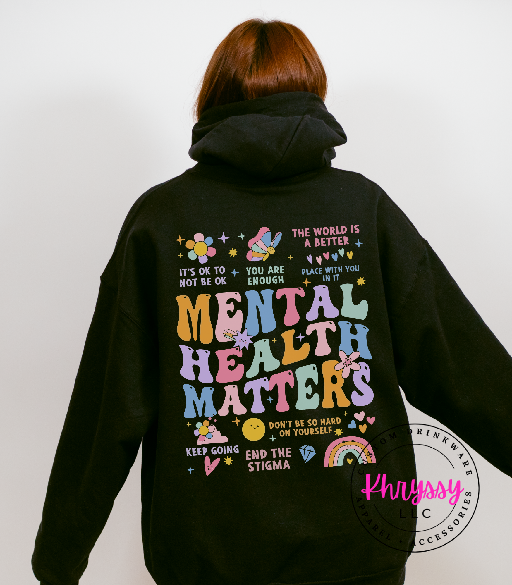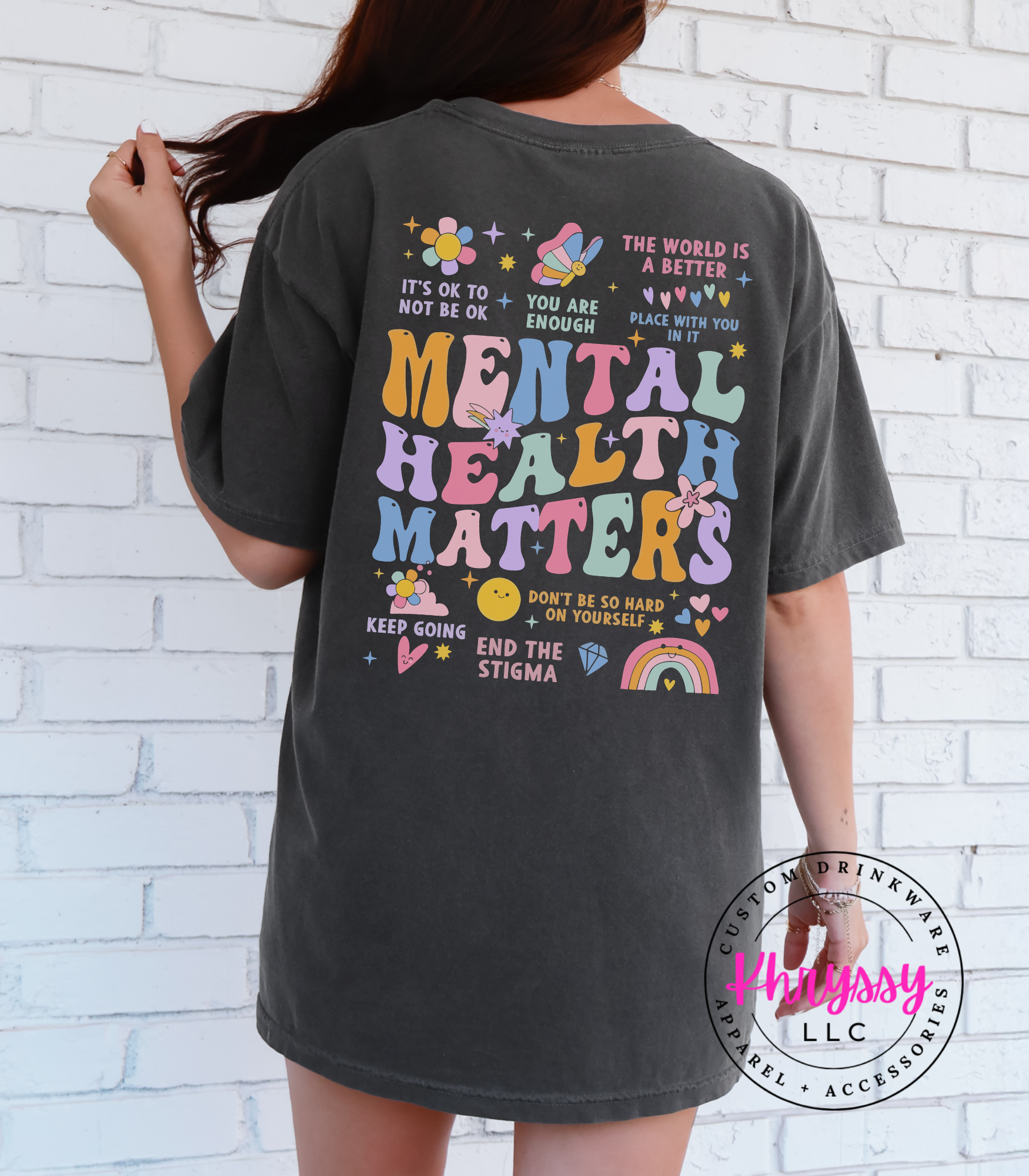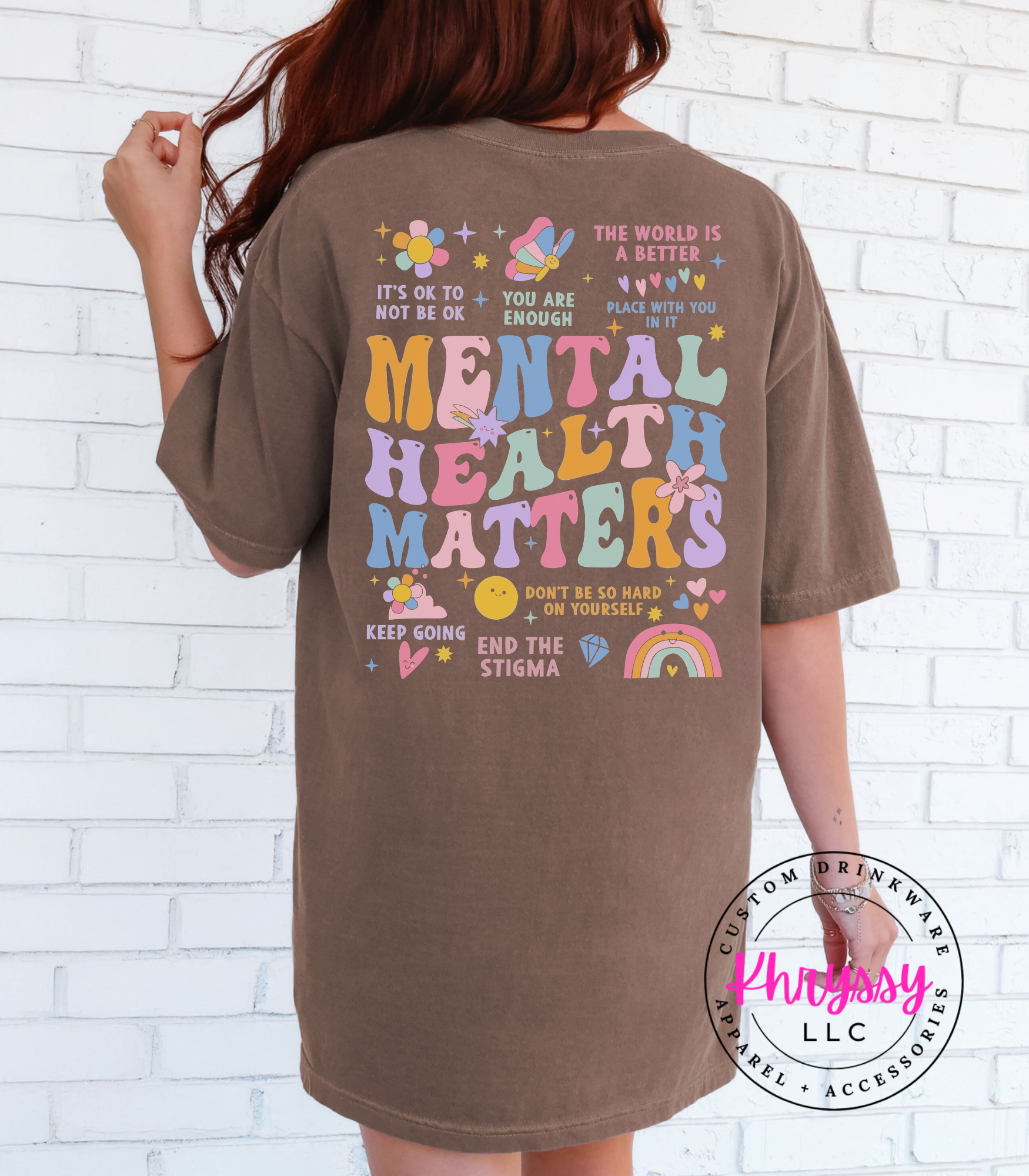 Uplift your spirit and spread positivity with this empowering item, boldly proclaiming "MENTAL HEALTH MATTERS." Adorned with a vibrant tapestry of affirmations like "YOU ARE ENOUGH" and "IT'S OKAY TO NOT BE OKAY," it's a comforting embrace for your well-being. Feel seen, validated, and encouraged, carrying a powerful message that inspires self-compassion and understanding. Crafted for exceptional softness and a comfortable fit, it offers all-day ease for daily affirmations, mental health advocacy, or simply as a reminder of your inherent worth. Choose this piece to celebrate resilience and actively work to end the stigma.
