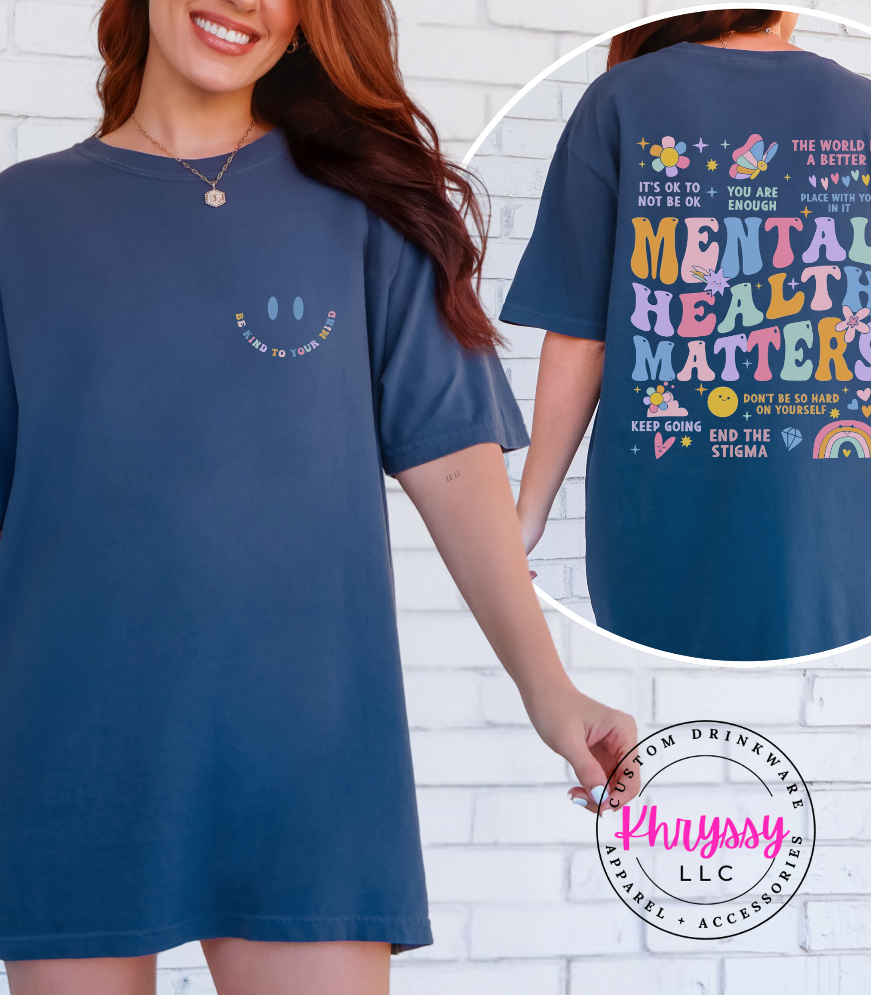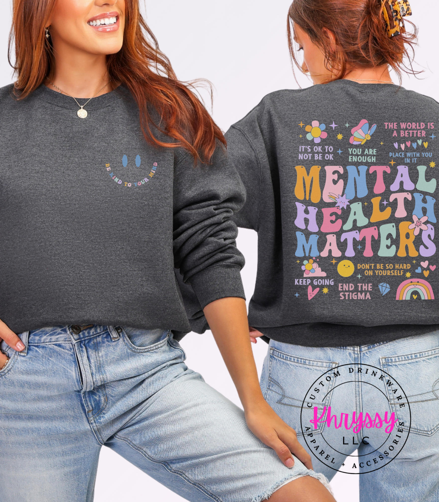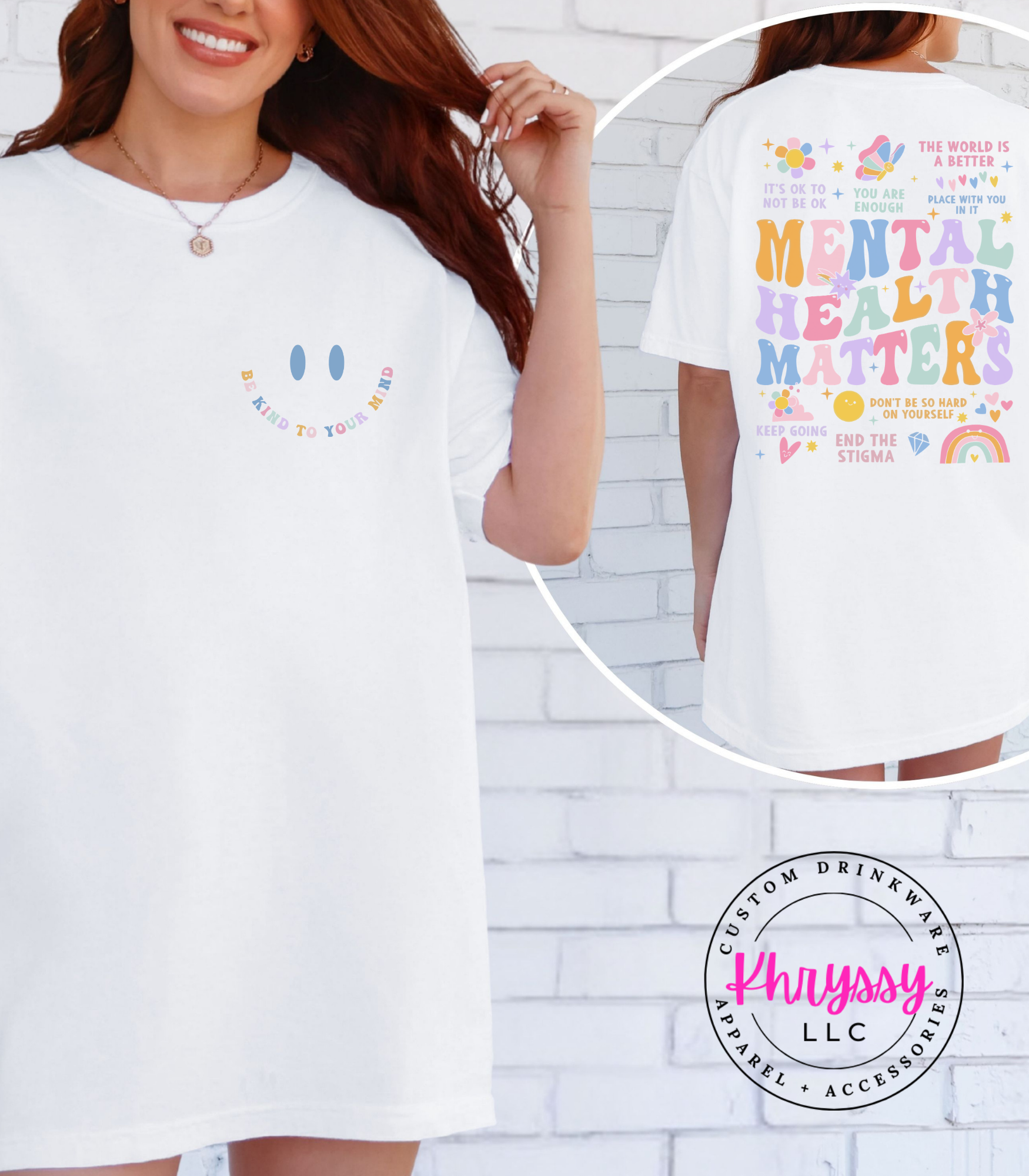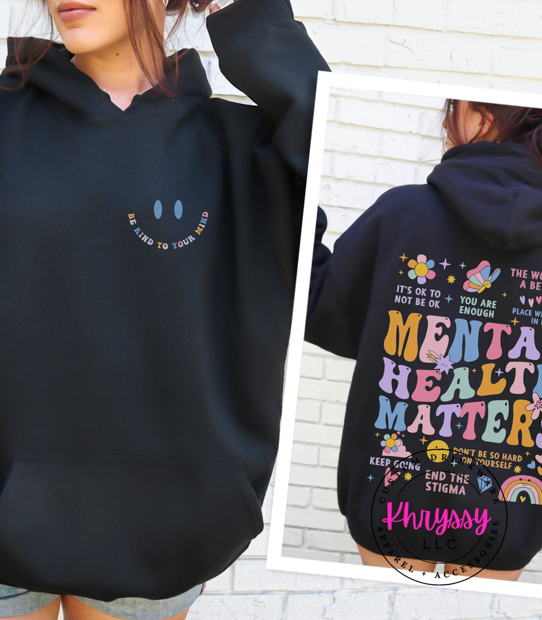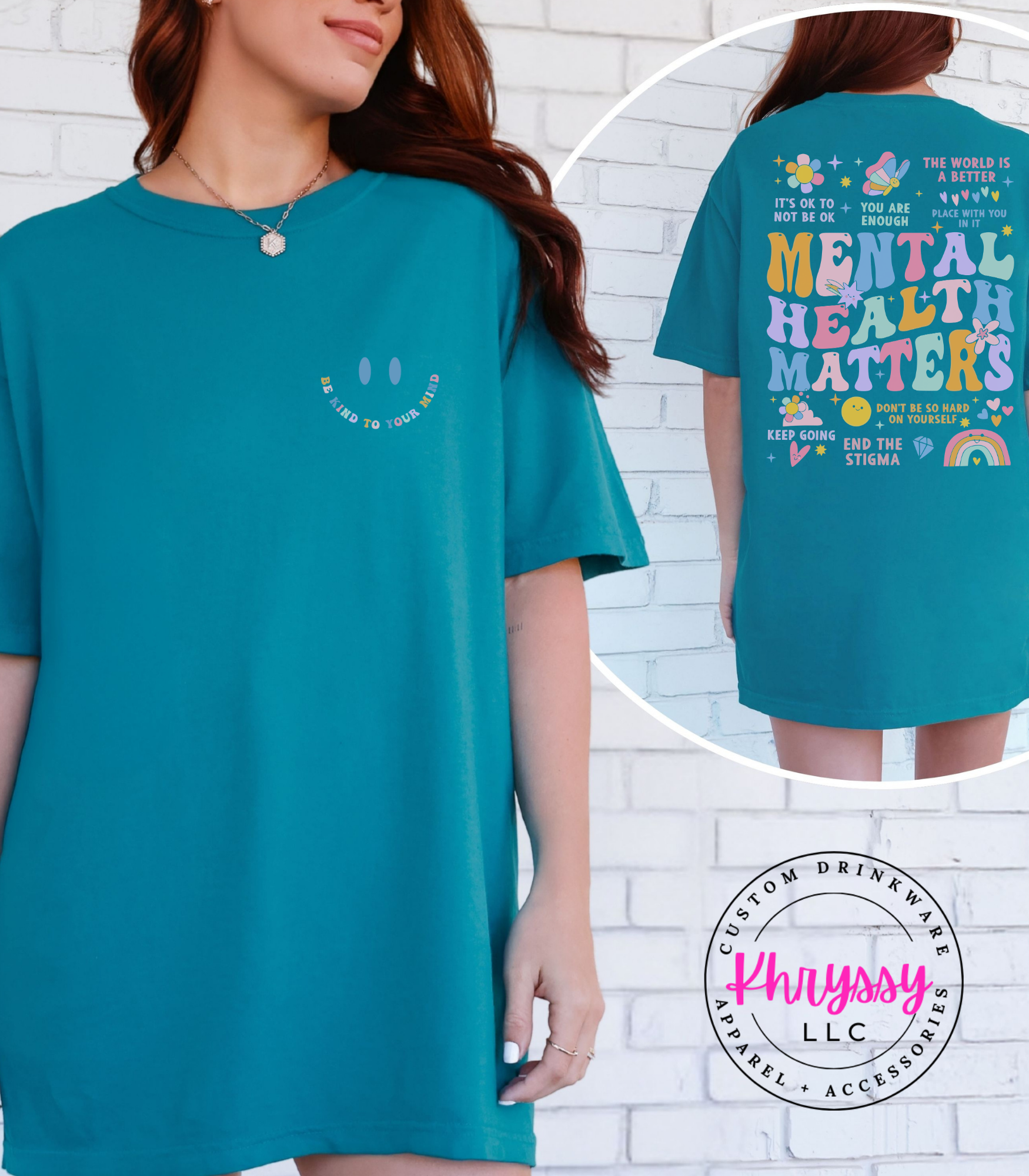 Uplift your spirit and spread positivity with this empowering item, boldly proclaiming "MENTAL HEALTH MATTERS." Adorned with a vibrant tapestry of affirmations like "YOU ARE ENOUGH" and "IT'S OKAY TO NOT BE OKAY," it's a comforting embrace for your well-being. Feel seen, validated, and encouraged, carrying a powerful message that inspires self-compassion and understanding. Crafted for exceptional softness and a comfortable fit, it offers all-day ease for daily affirmations, mental health advocacy, or simply as a reminder of your inherent worth. Choose this piece to celebrate resilience and actively work to end the stigma.