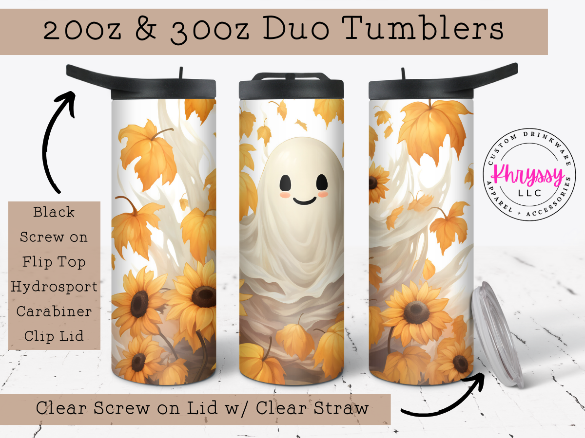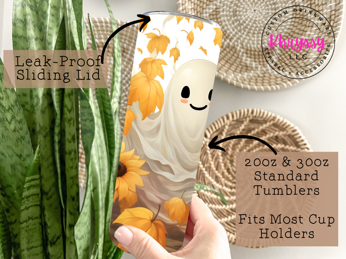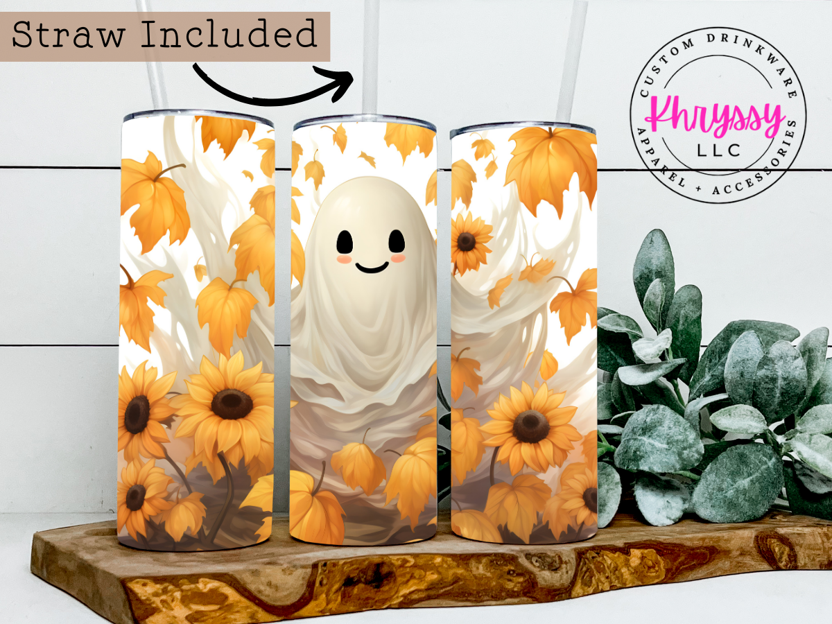 Unleash the spirits of fun and frivolity with our Playful Ghost 20oz Tumbler with Straw, a charming companion for all your hauntingly delightful beverages.