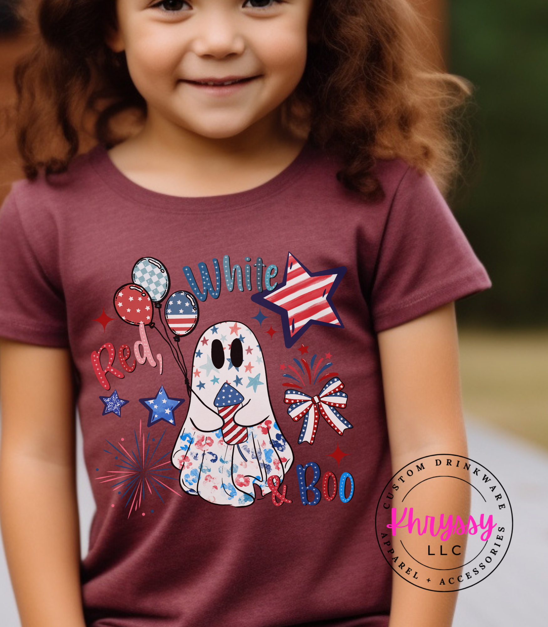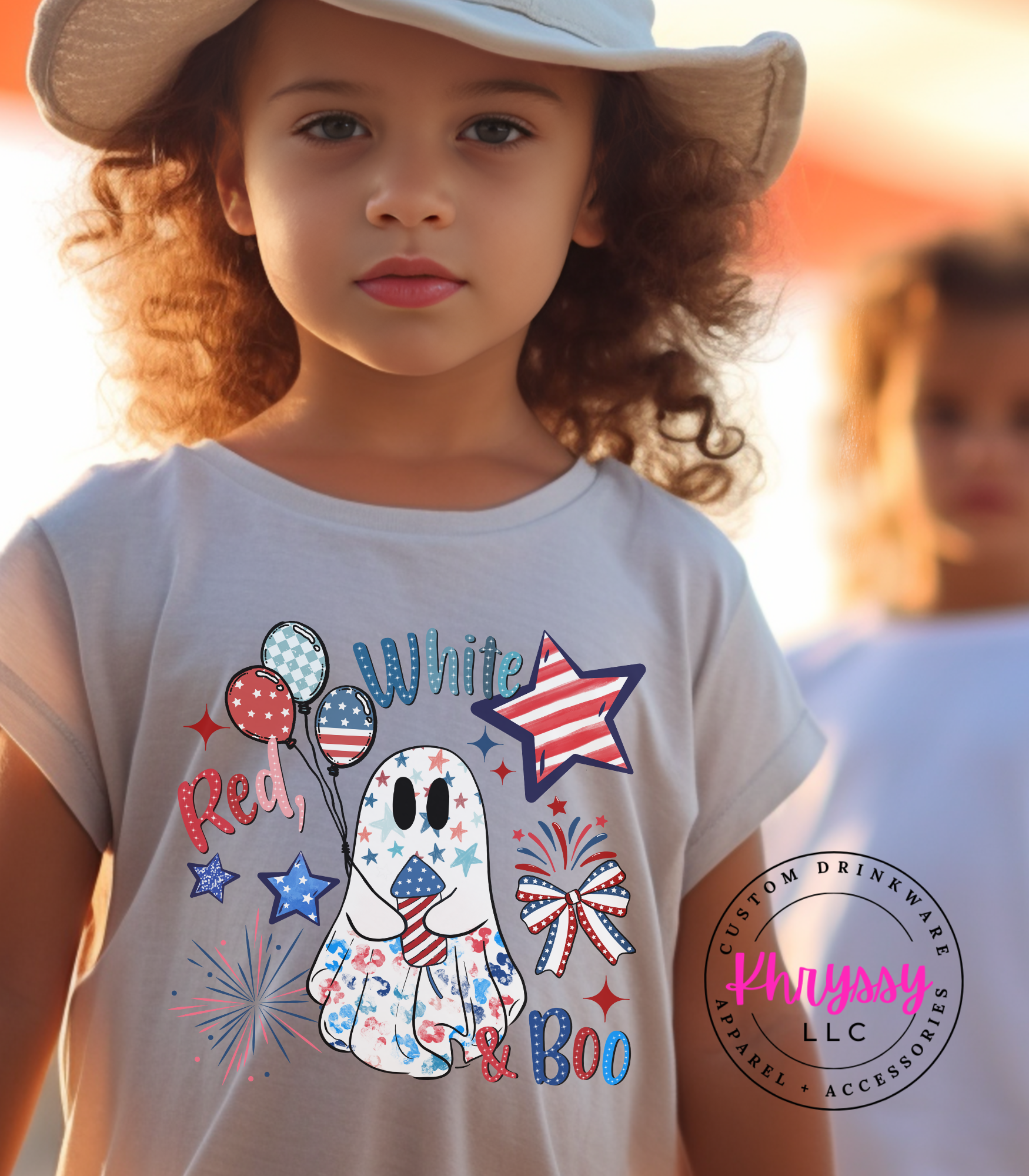Experience the spirit of patriotism with our Red, White & Boo unisex shirt. This unique t-shirt features a patriotic ghost surrounded by stars and balloons, perfect for celebrating in style. Made with soft, high-quality fabric, this shirt offers both comfort and style.
