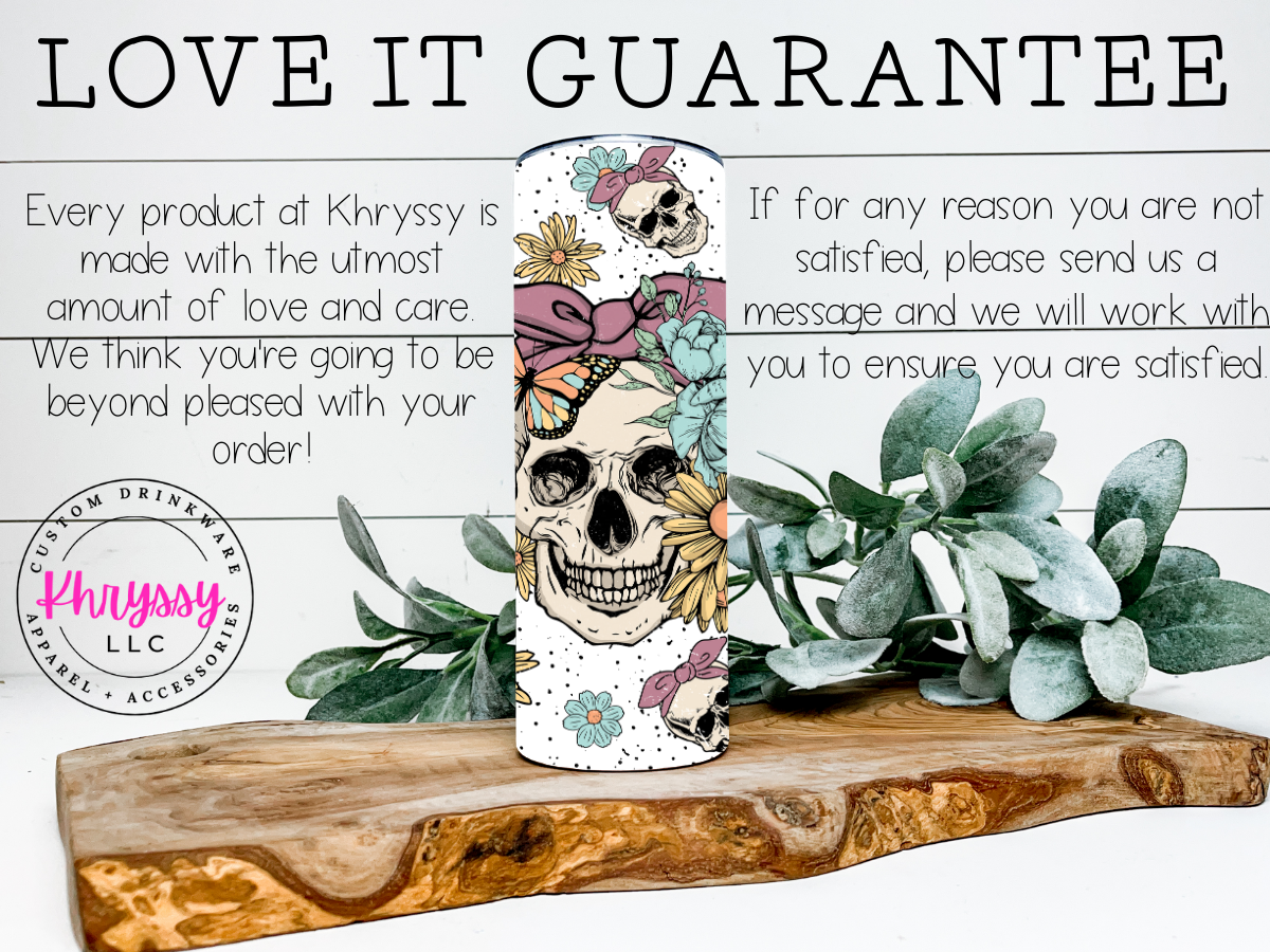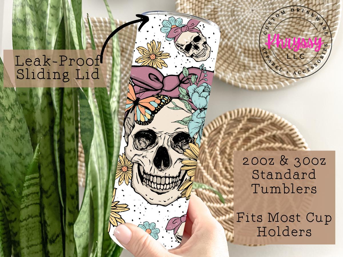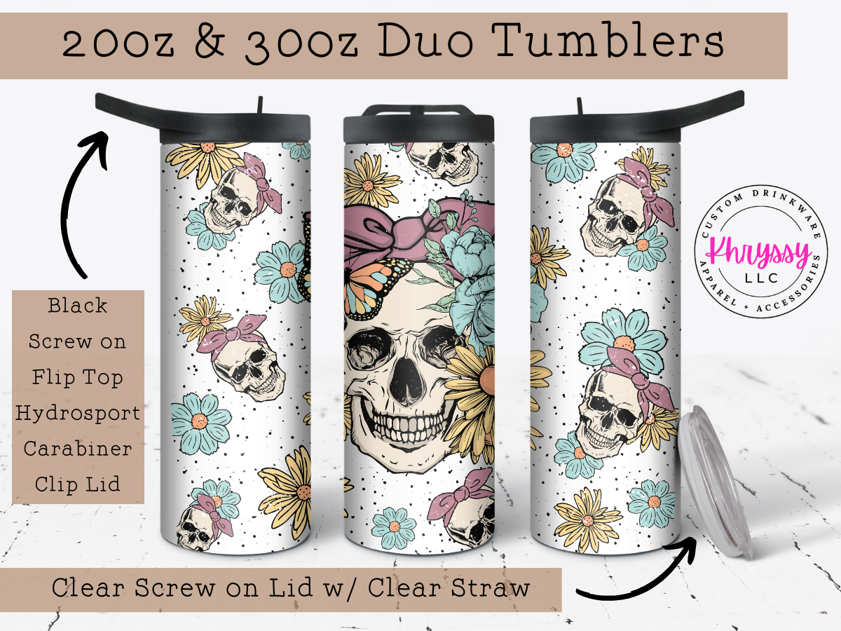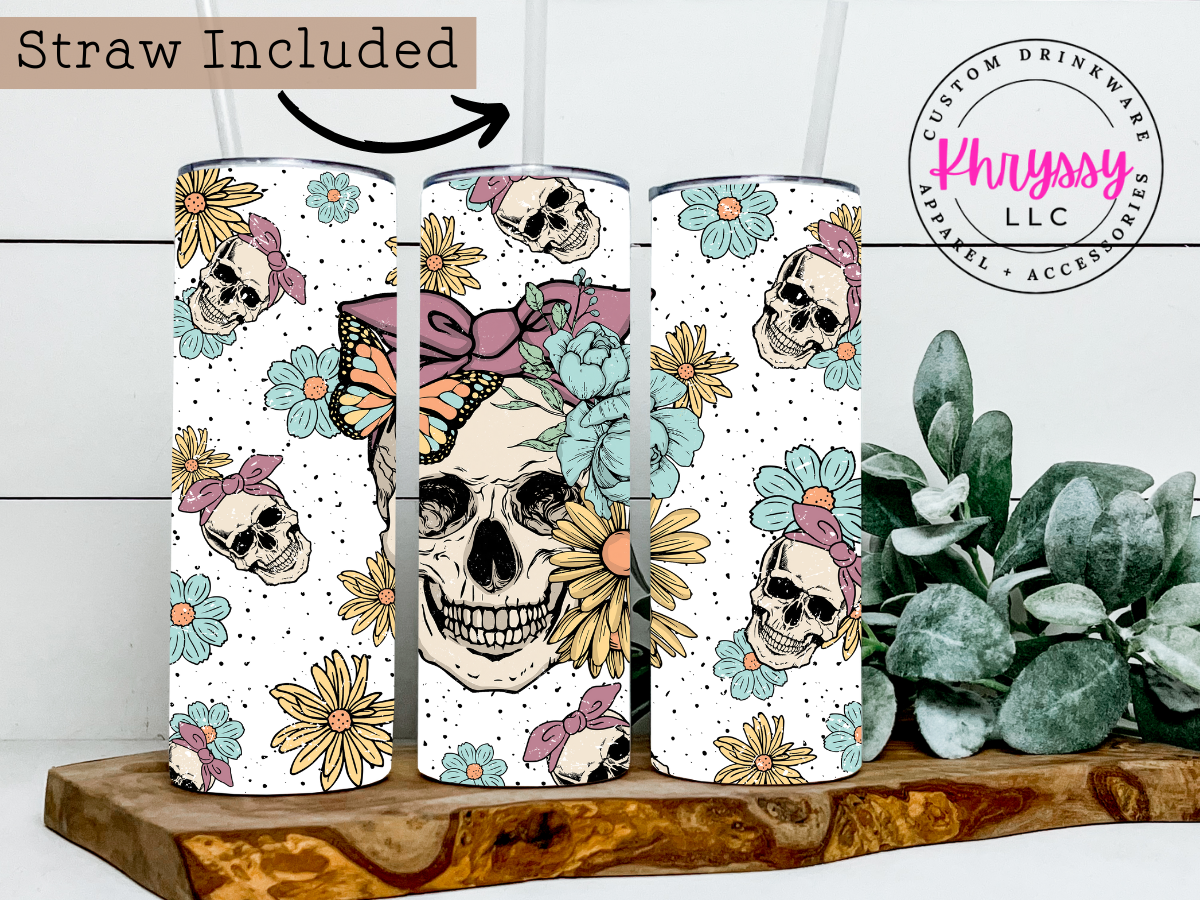 Skull and Butterfly 20oz Tumbler with Straw, perfect for holding your favorite beverage! This tumbler is perfect for any coffee lover!